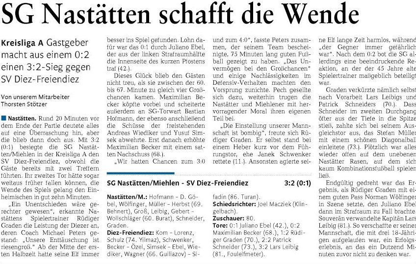 bitter.“ Nastättens Trainer Rüdiger Graden: „Am Ende war das