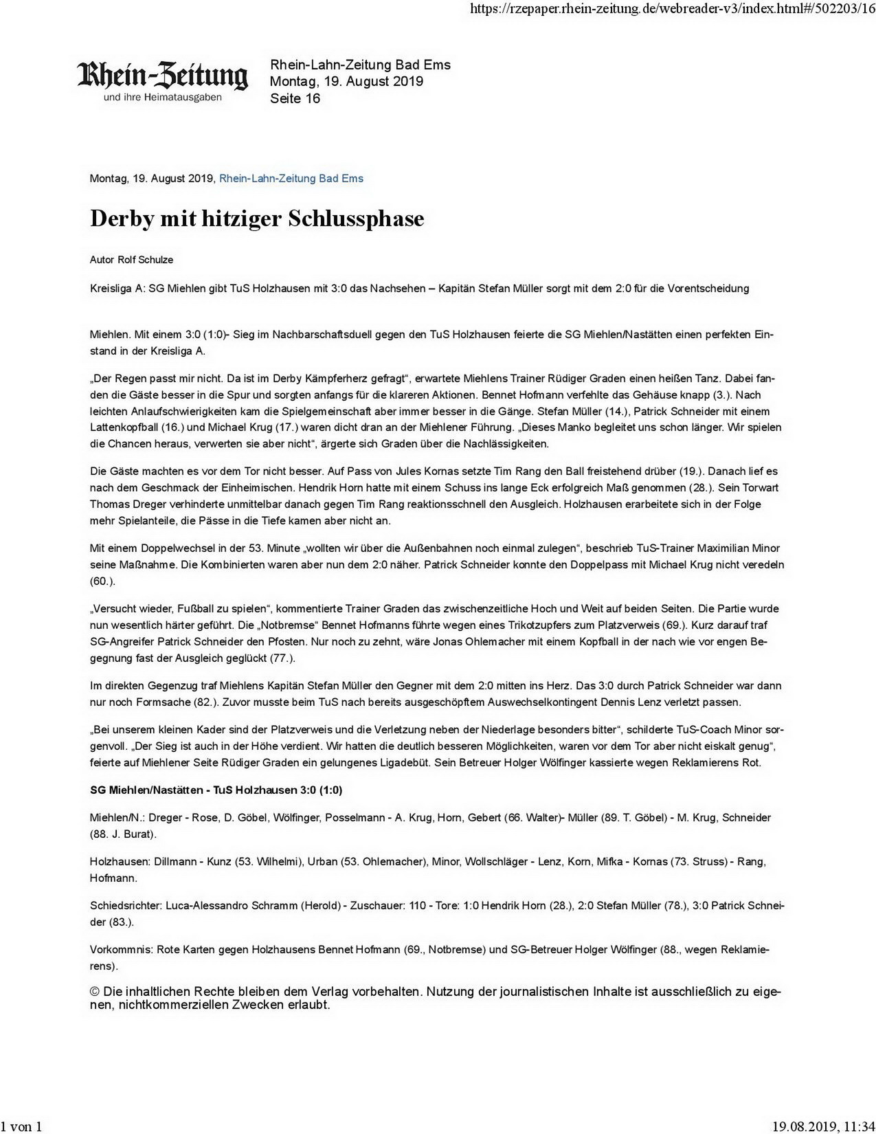 Holzhausen - SG Miehlen/Nastätten 5:1 (3:0).