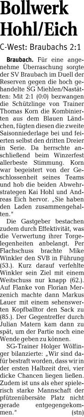 SG Miehlen/Nastätten II - SV Oelsberg 6:3 (4:1). Tore: