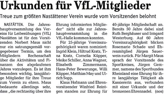 VfL Nastätten am 08.03.2008 konnte der Vorsitzende Norbert Maus