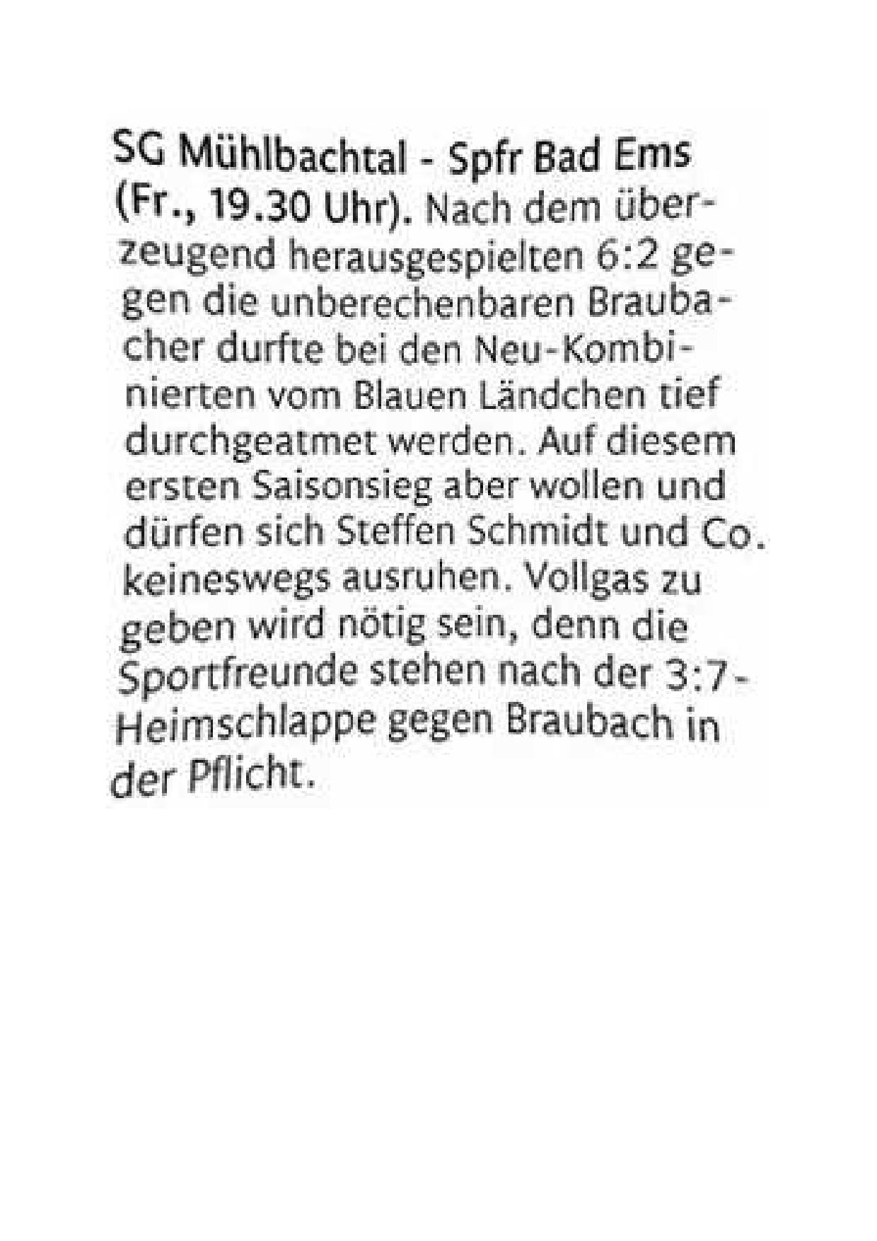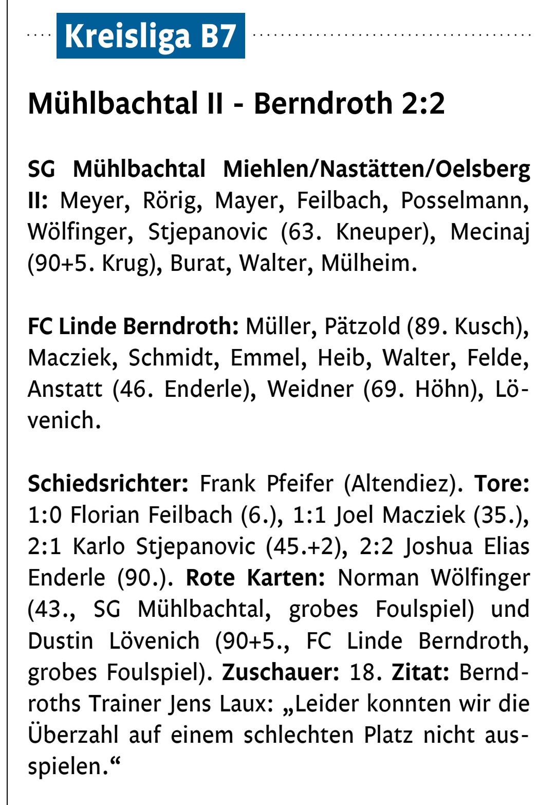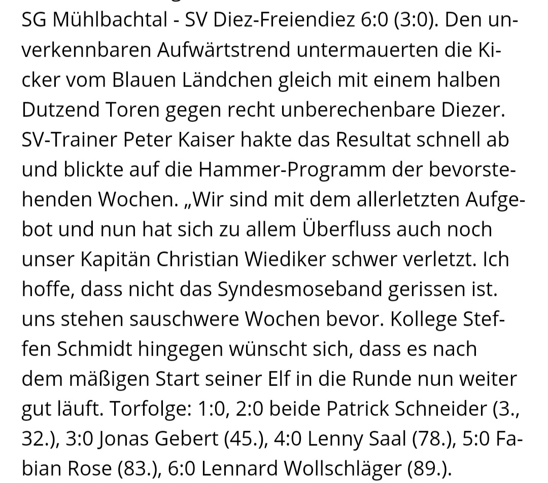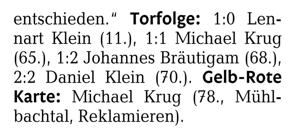 beiden Gegentoren. „Das hat Mühlbachtal bestraft.“ Tore: 1:0 Louis