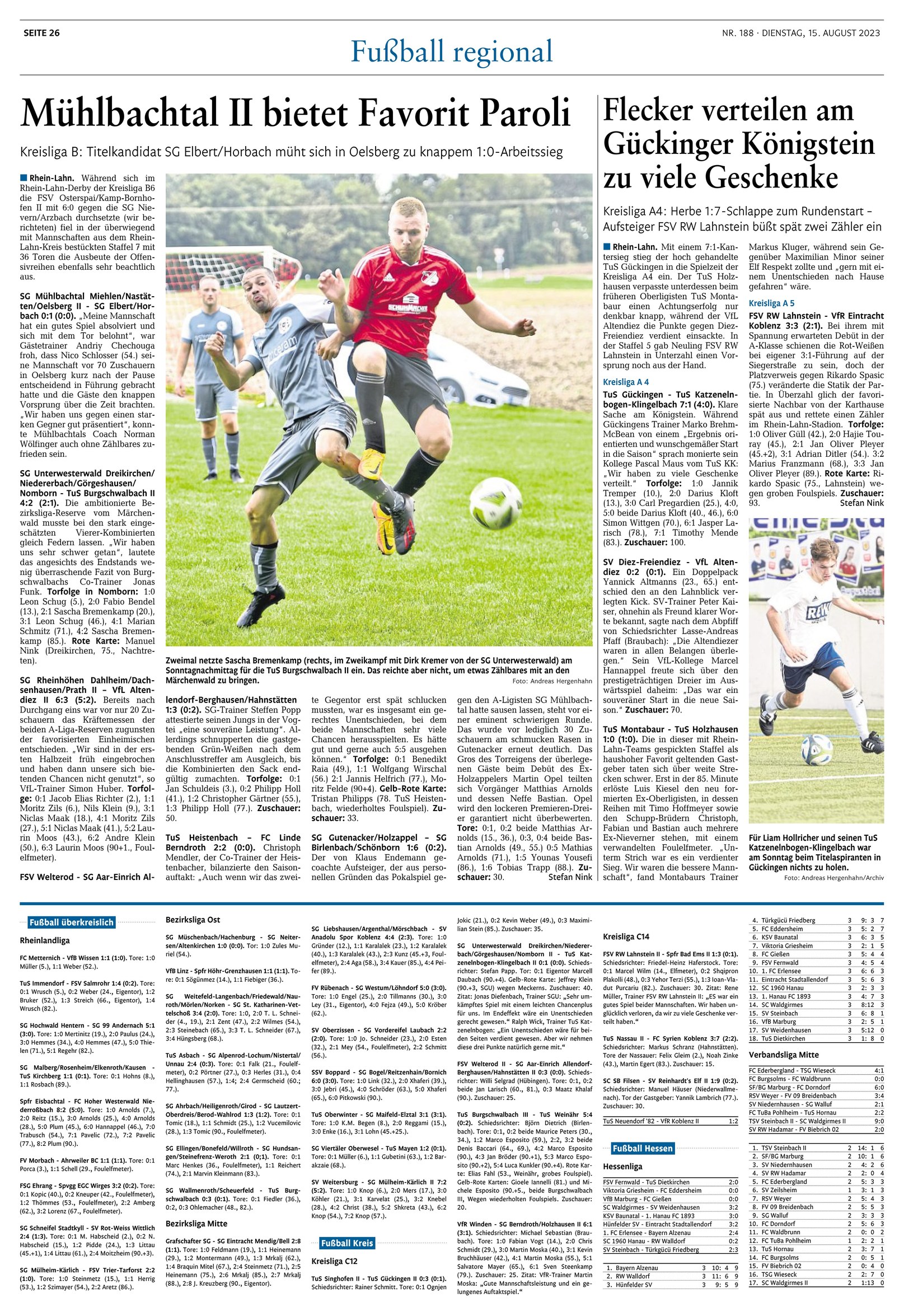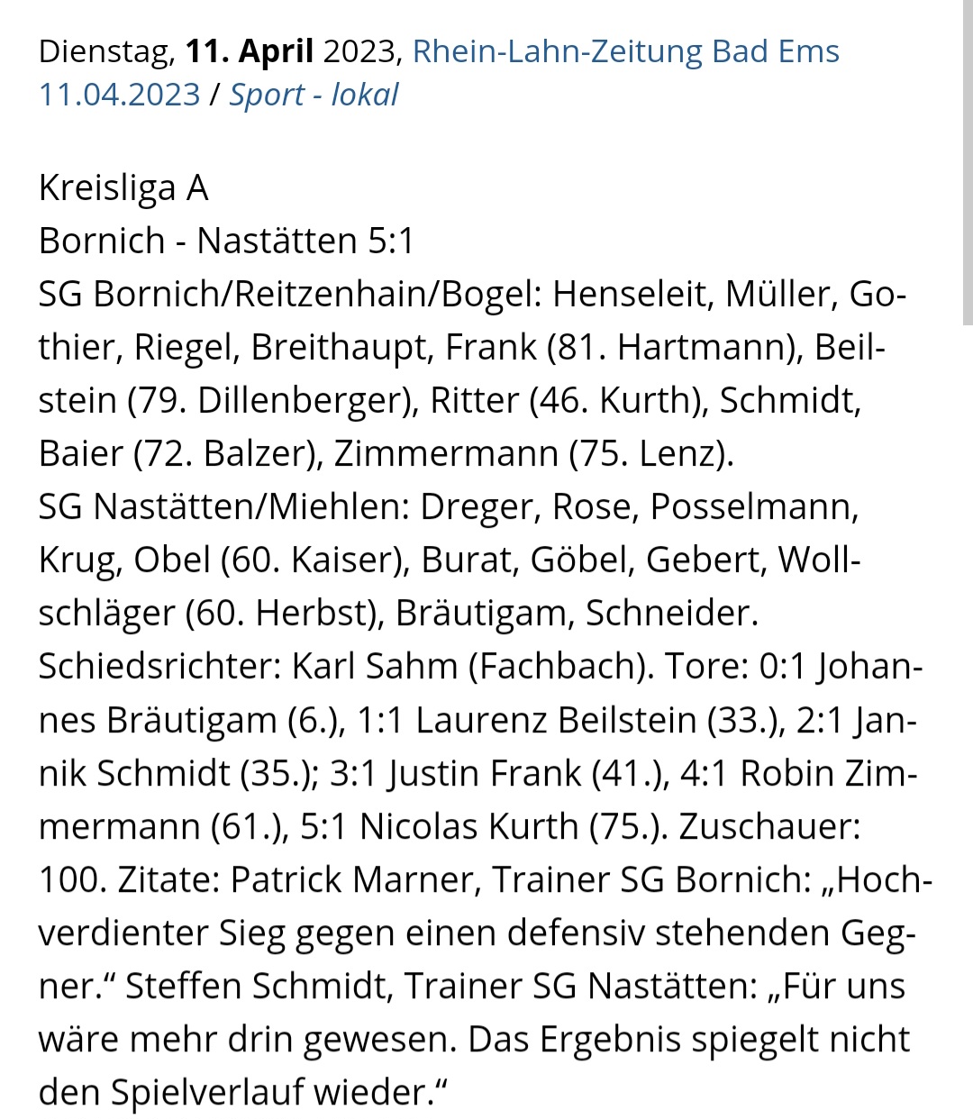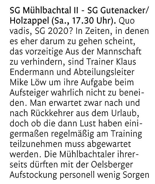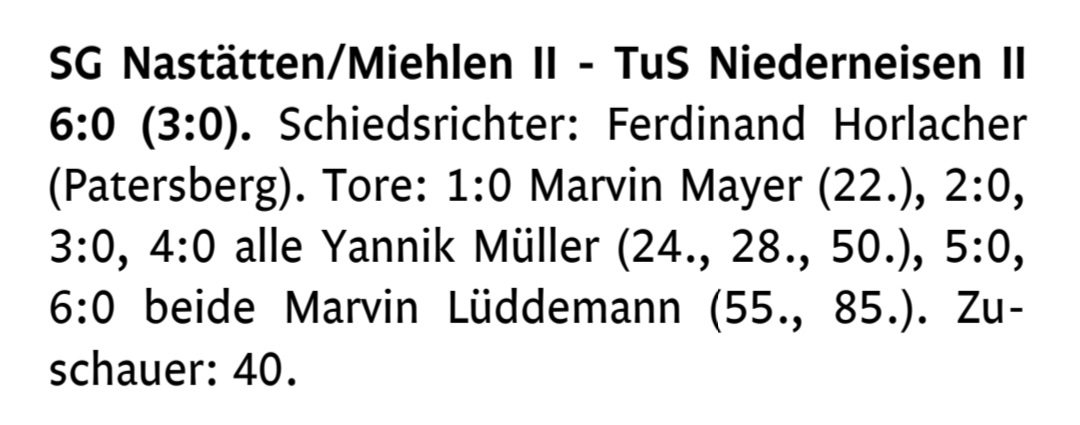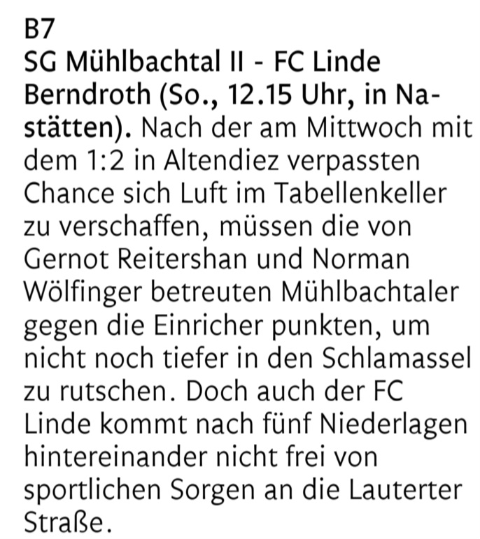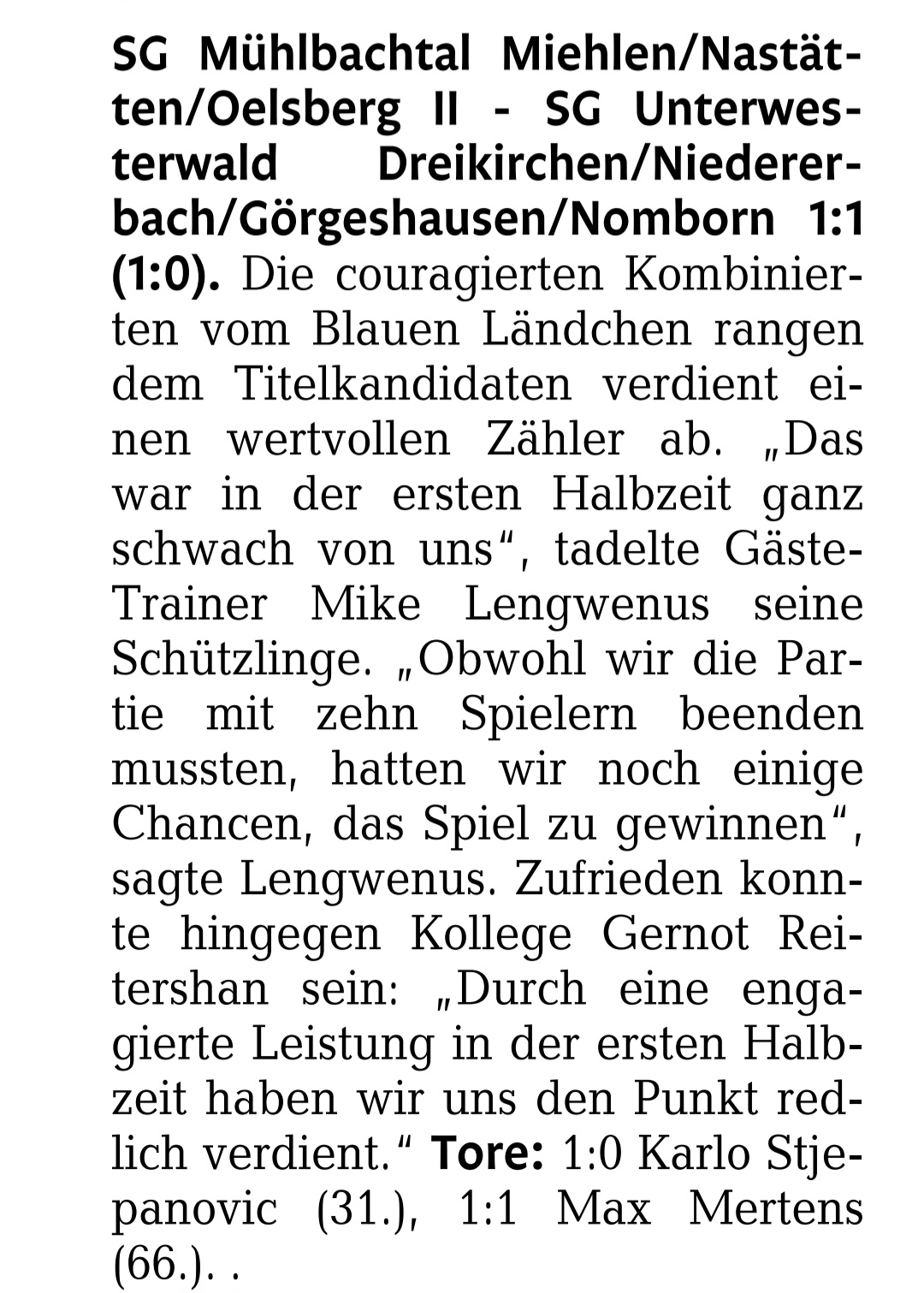 beiden Gegentoren. „Das hat Mühlbachtal bestraft.“ Tore: 1:0 Louis