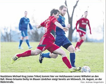 auf dem Foto links, im Duell mit Dennis Babst) hatten die Kugel,