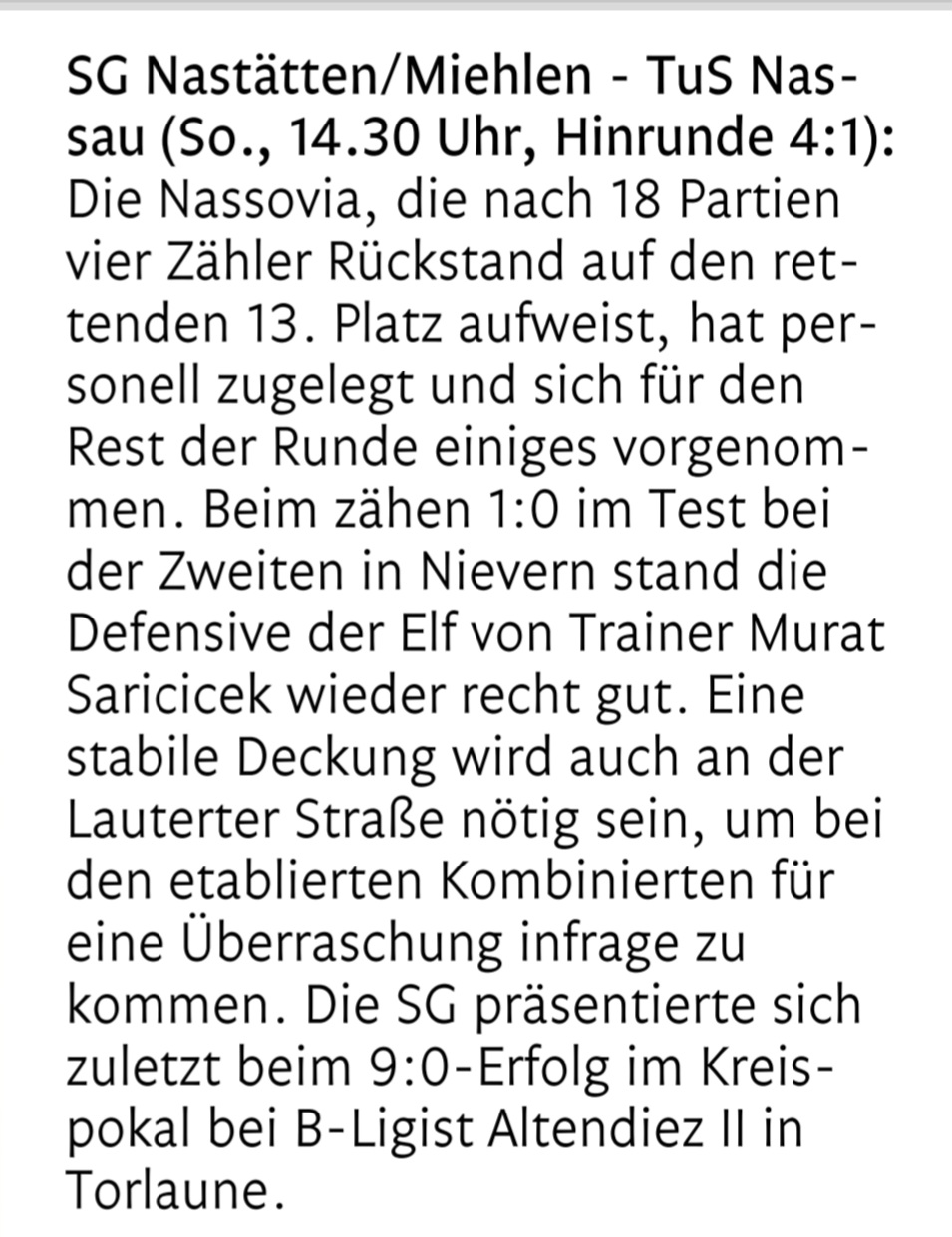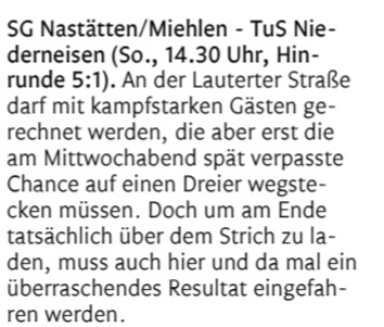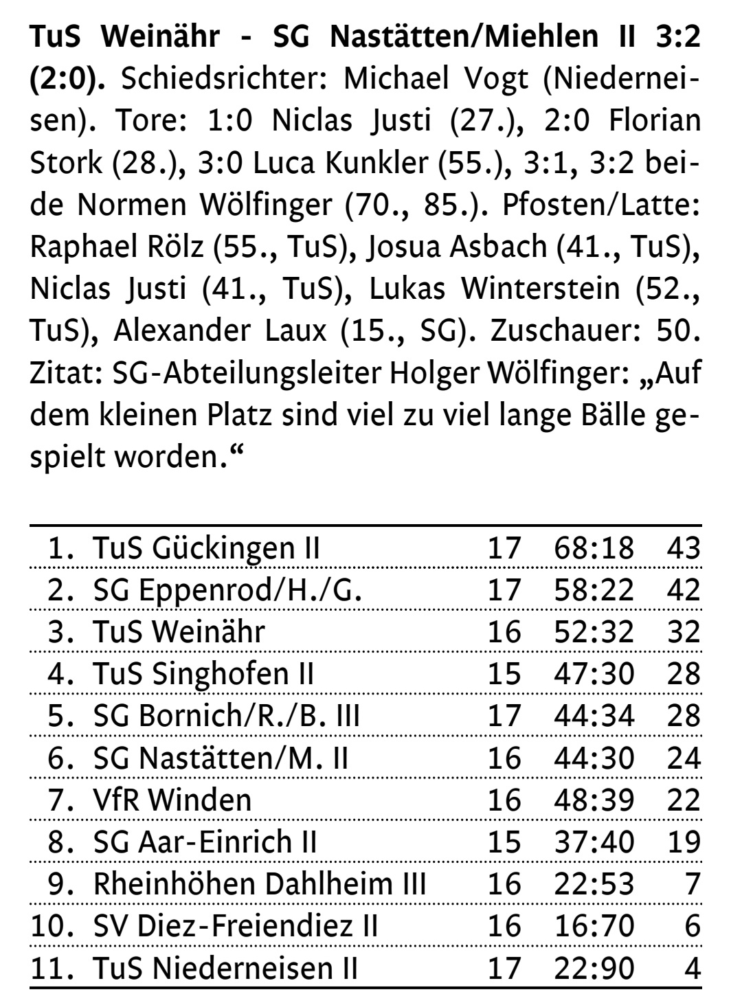 Effizienz spricht für Nastätten: TuS Singhofen verliert