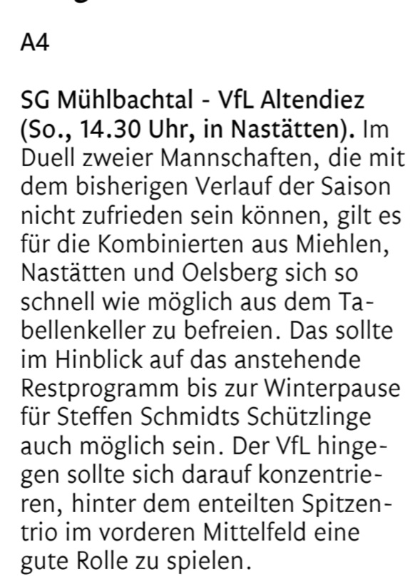 der VfL Altendiez und die SG Nastätten/Miehlen mit einem