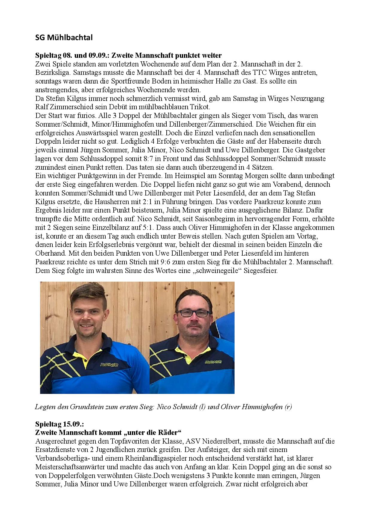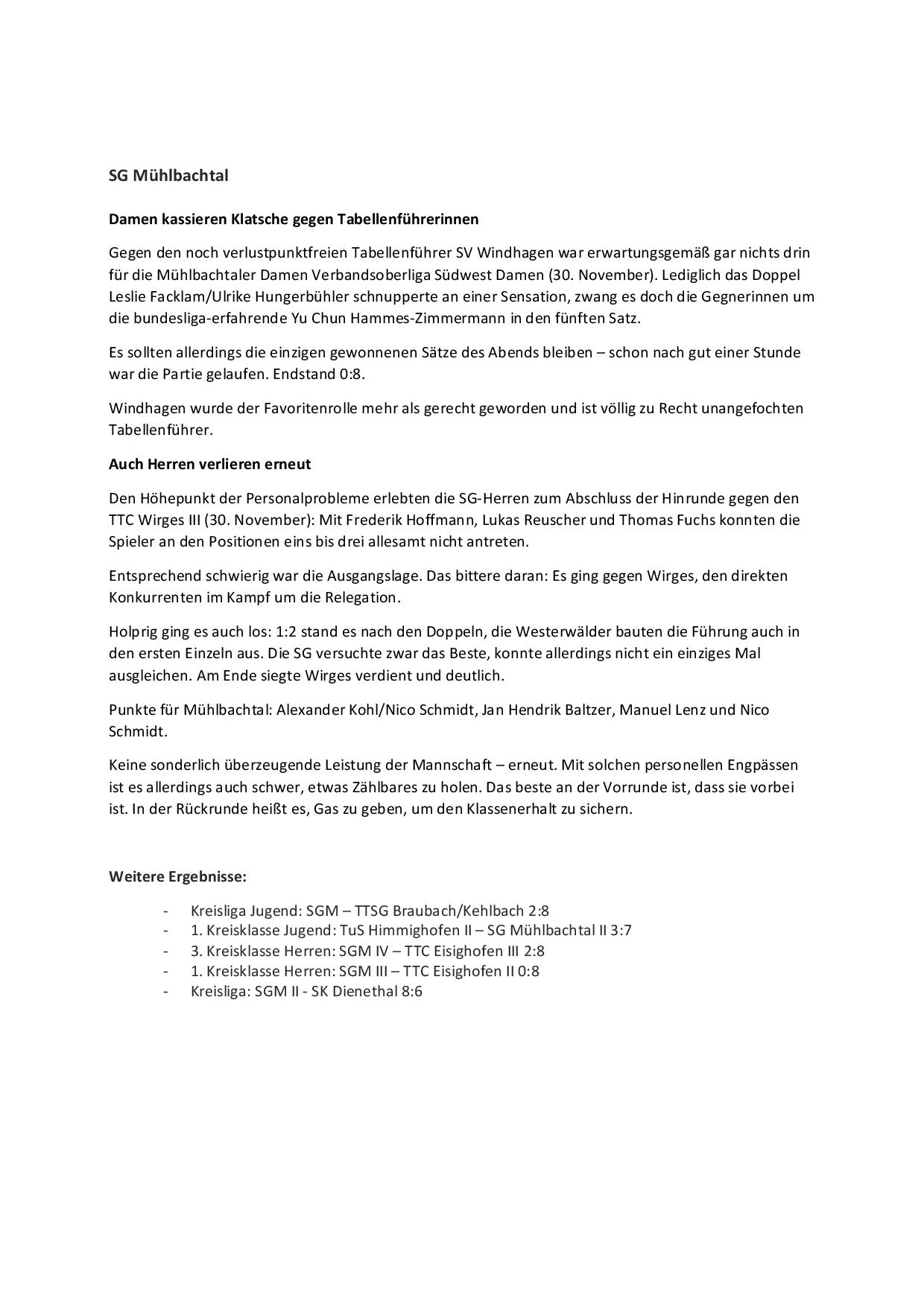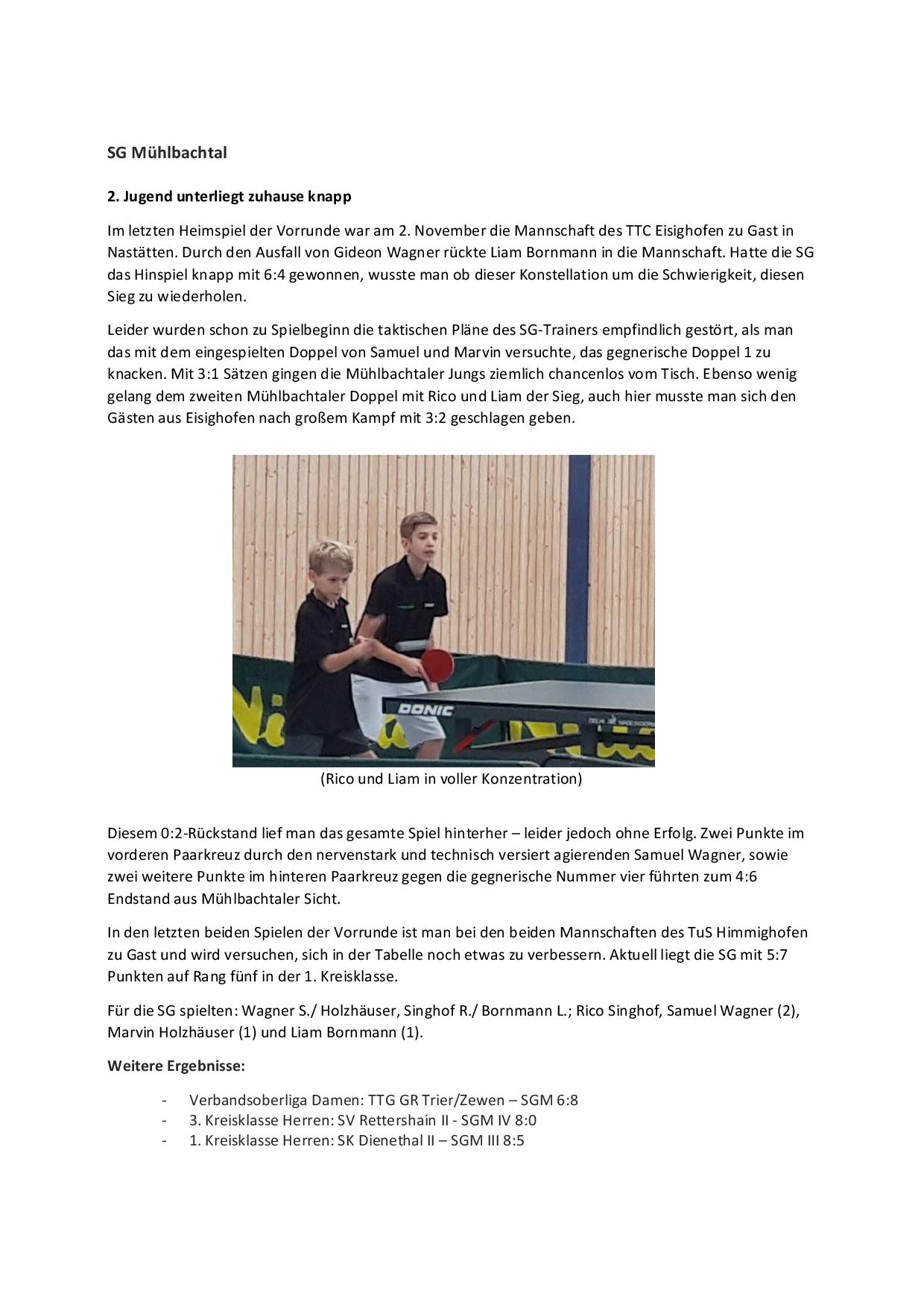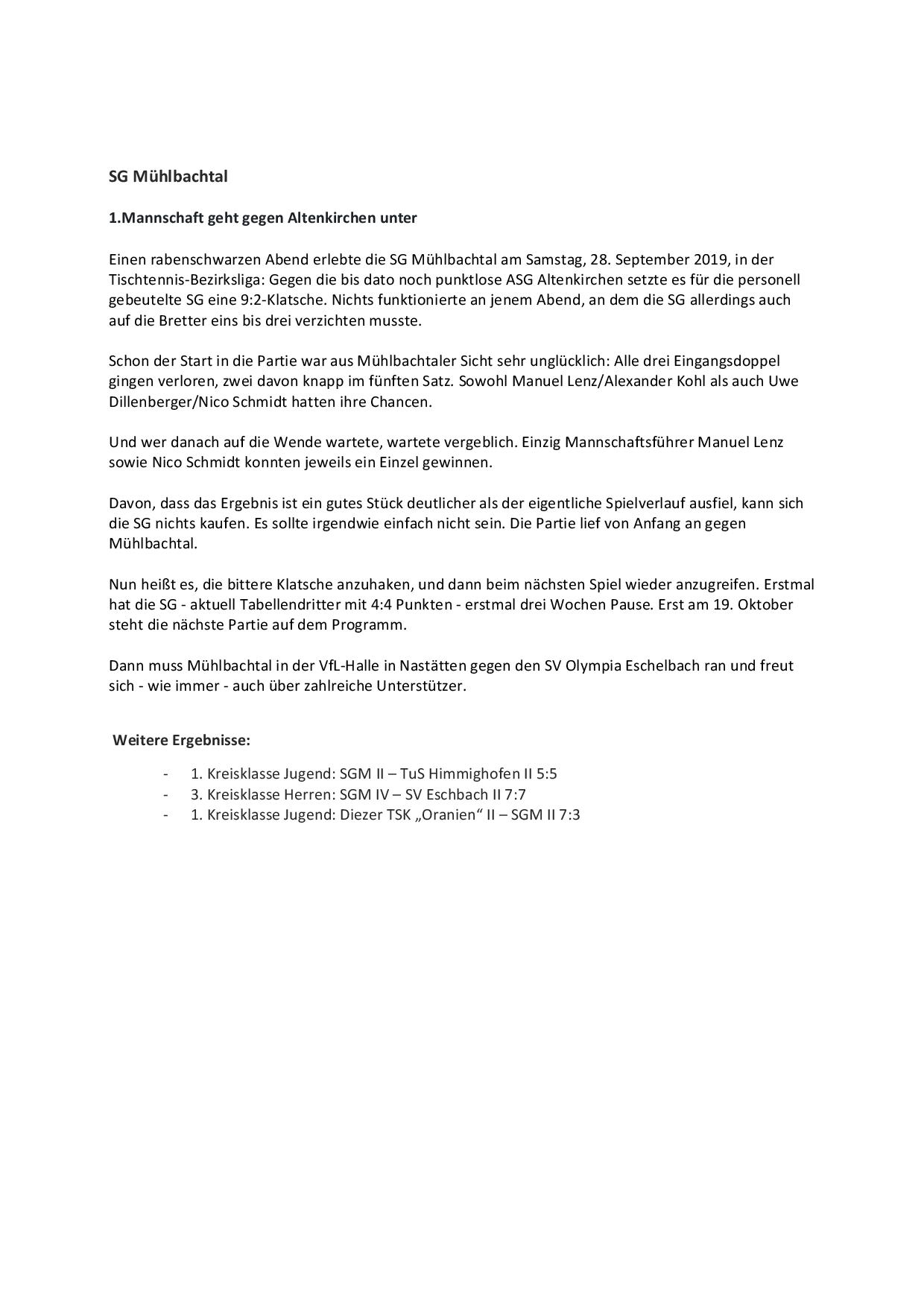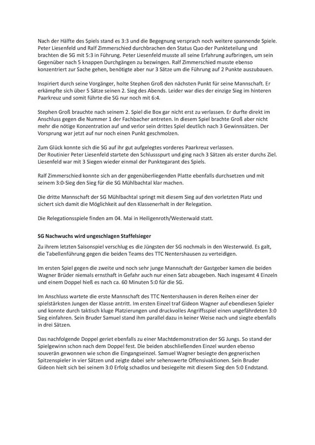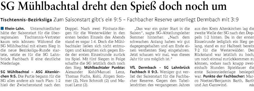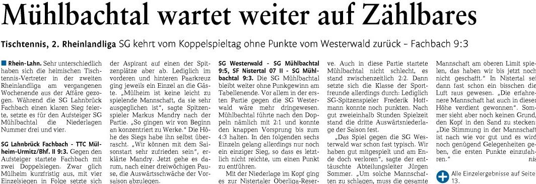 SG Mühlbachtal - TTC Wirges II 7:9.