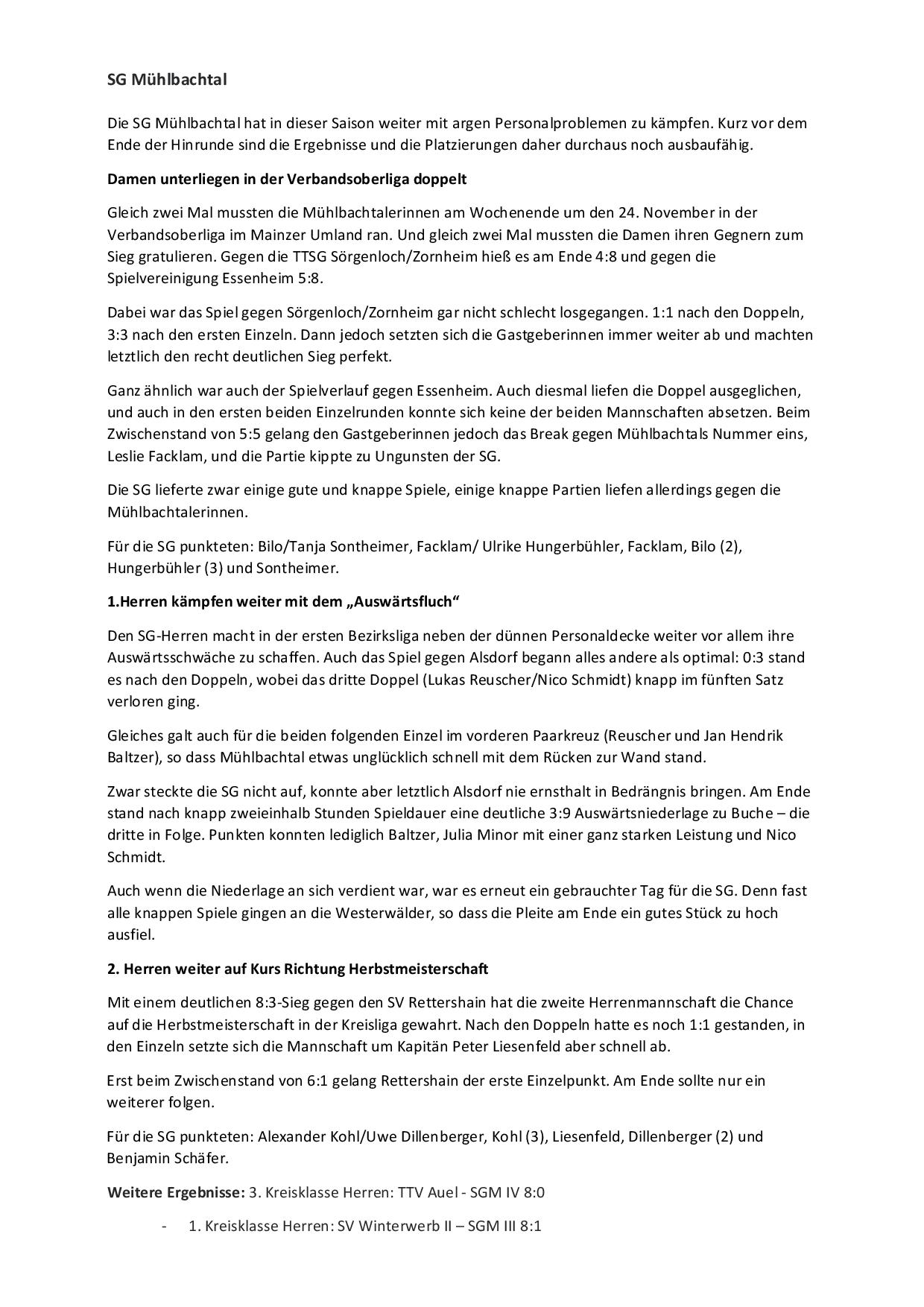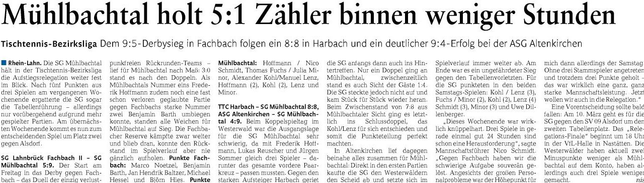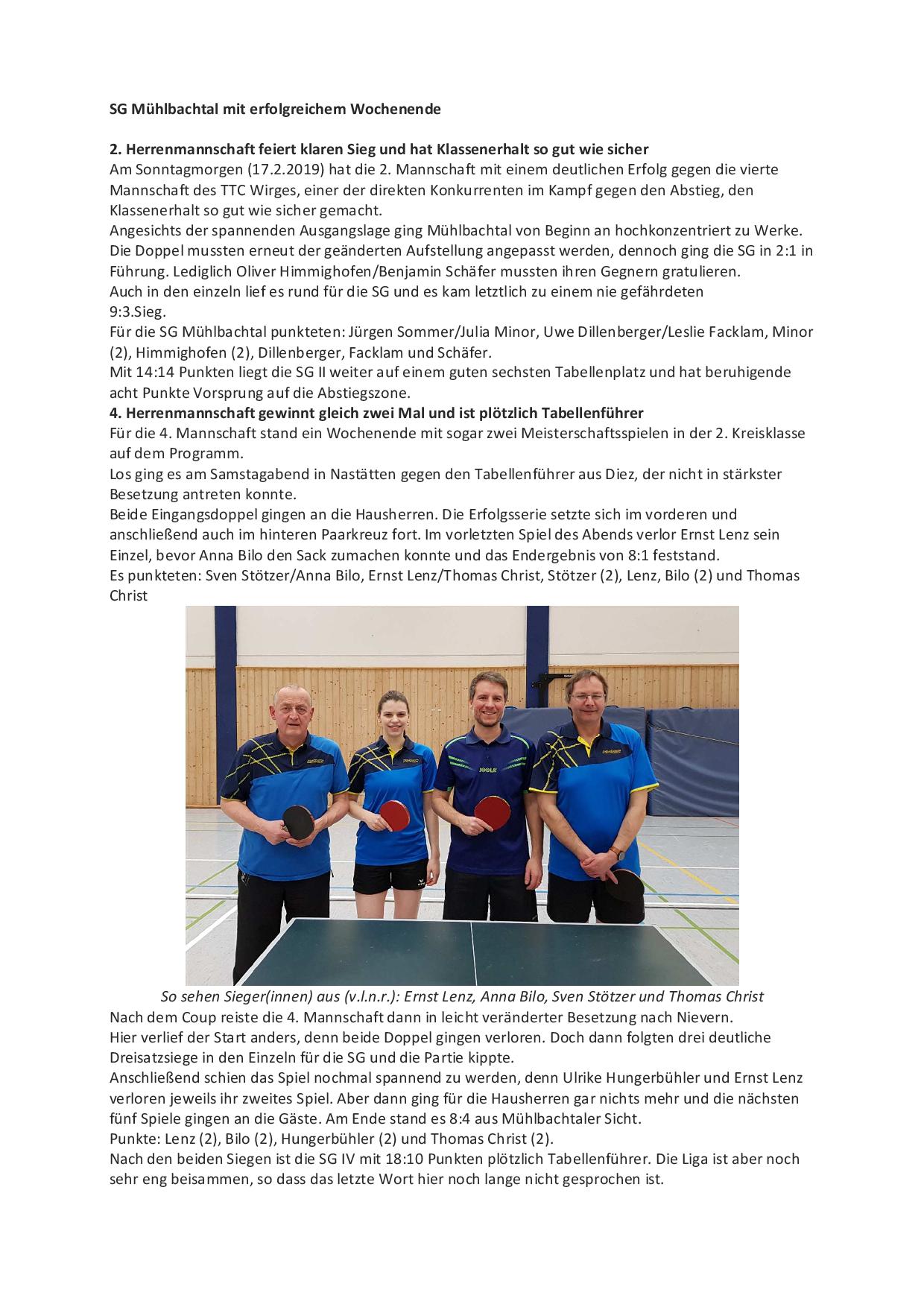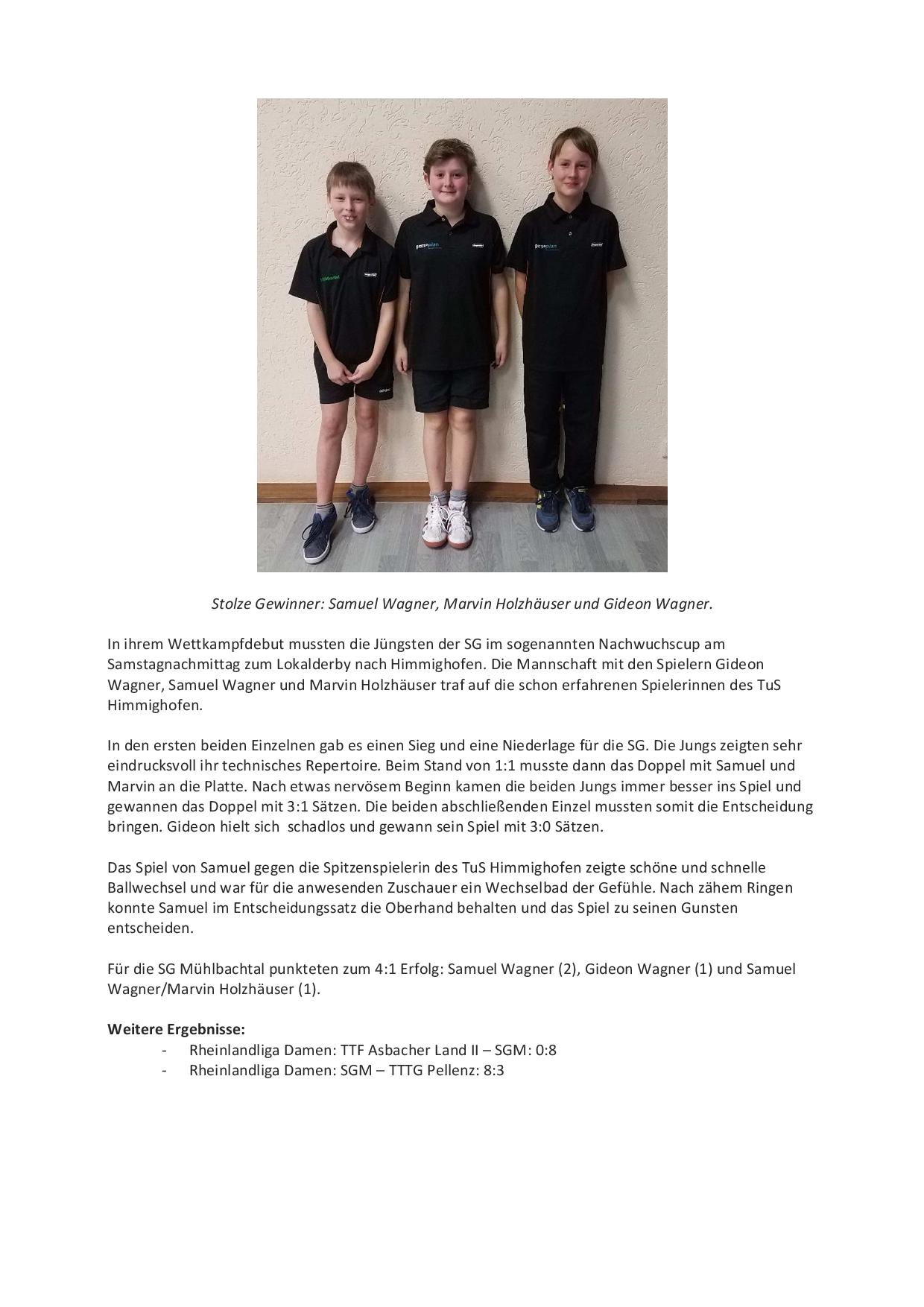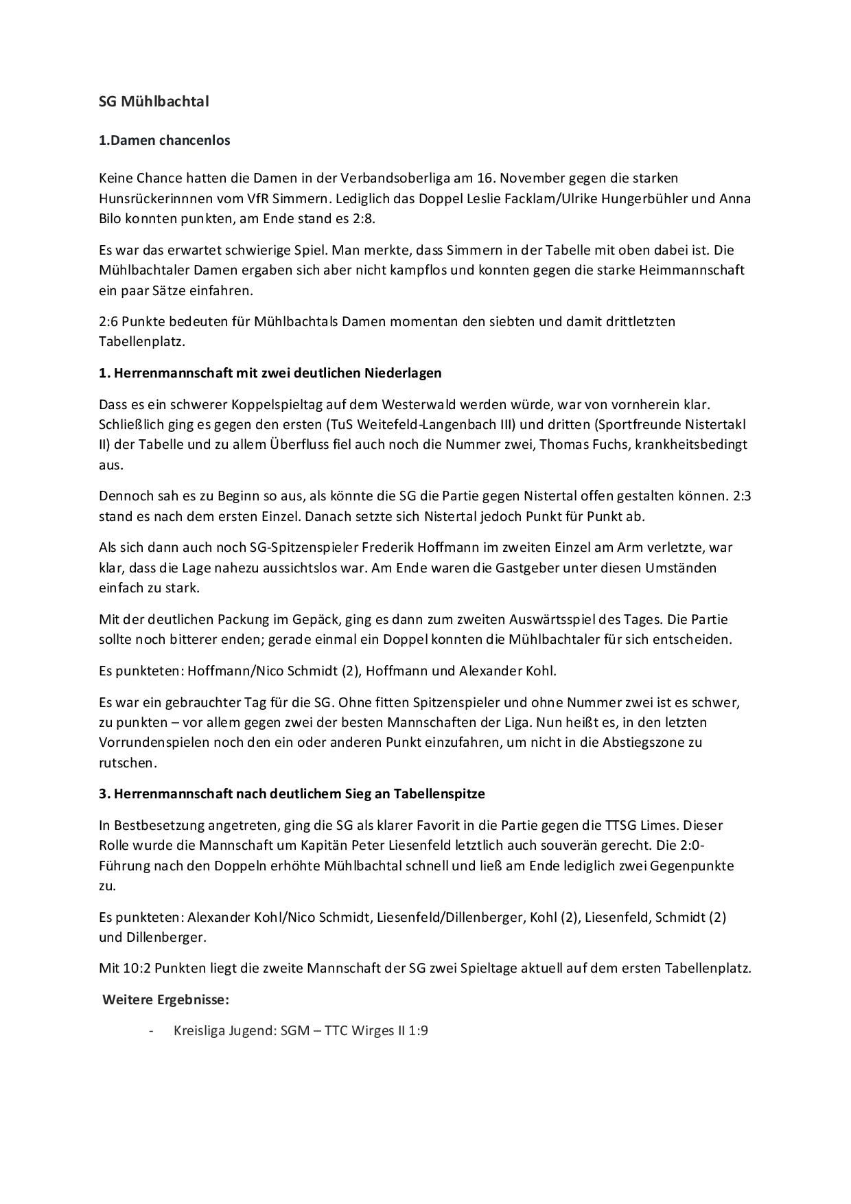 SG Mühlbachtal - TTC Wirges II 7:9.