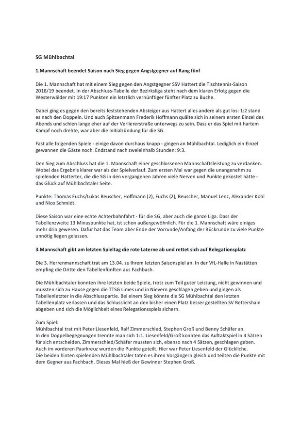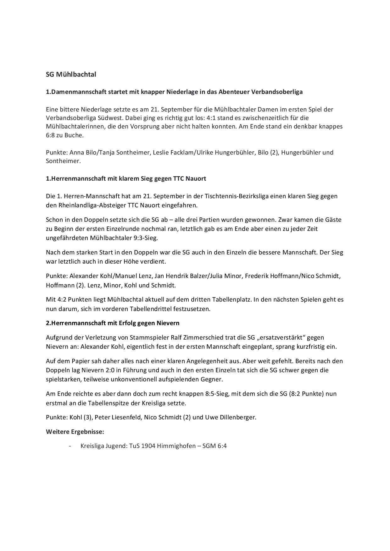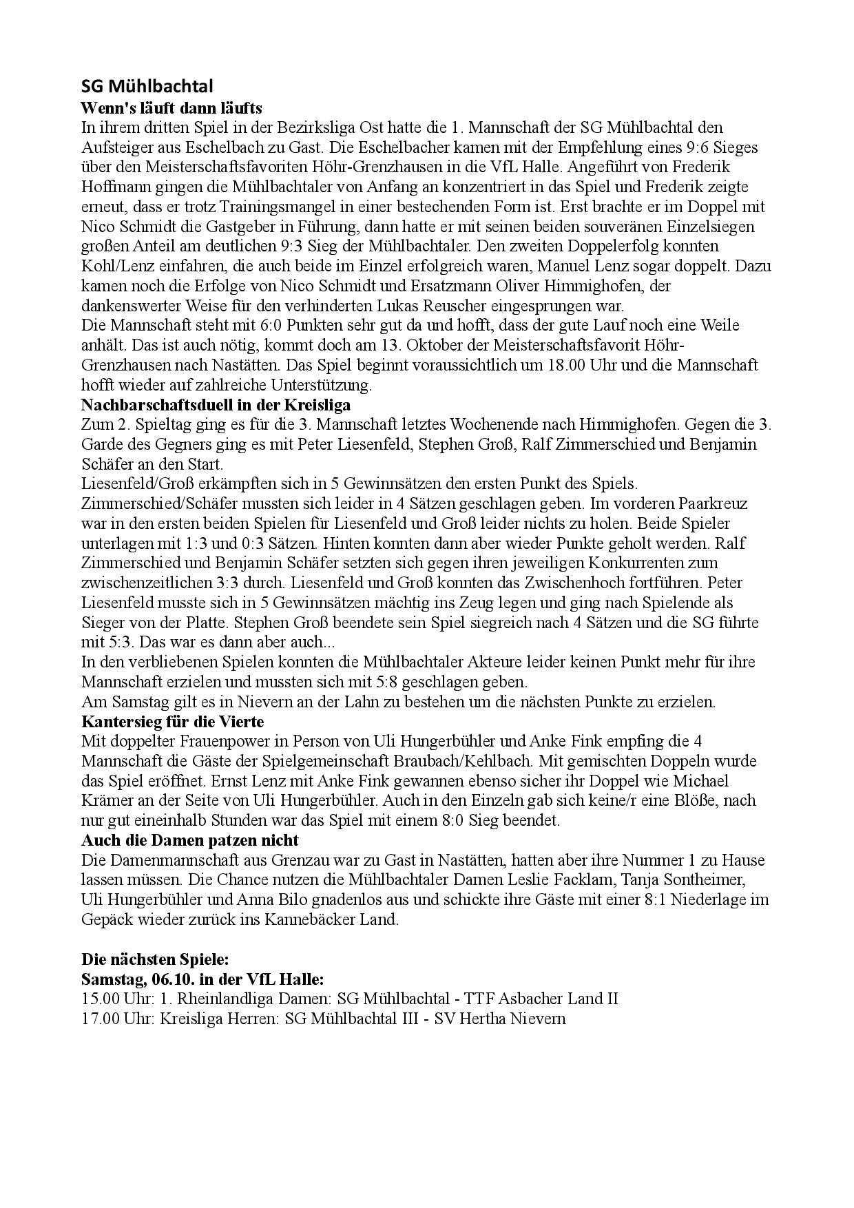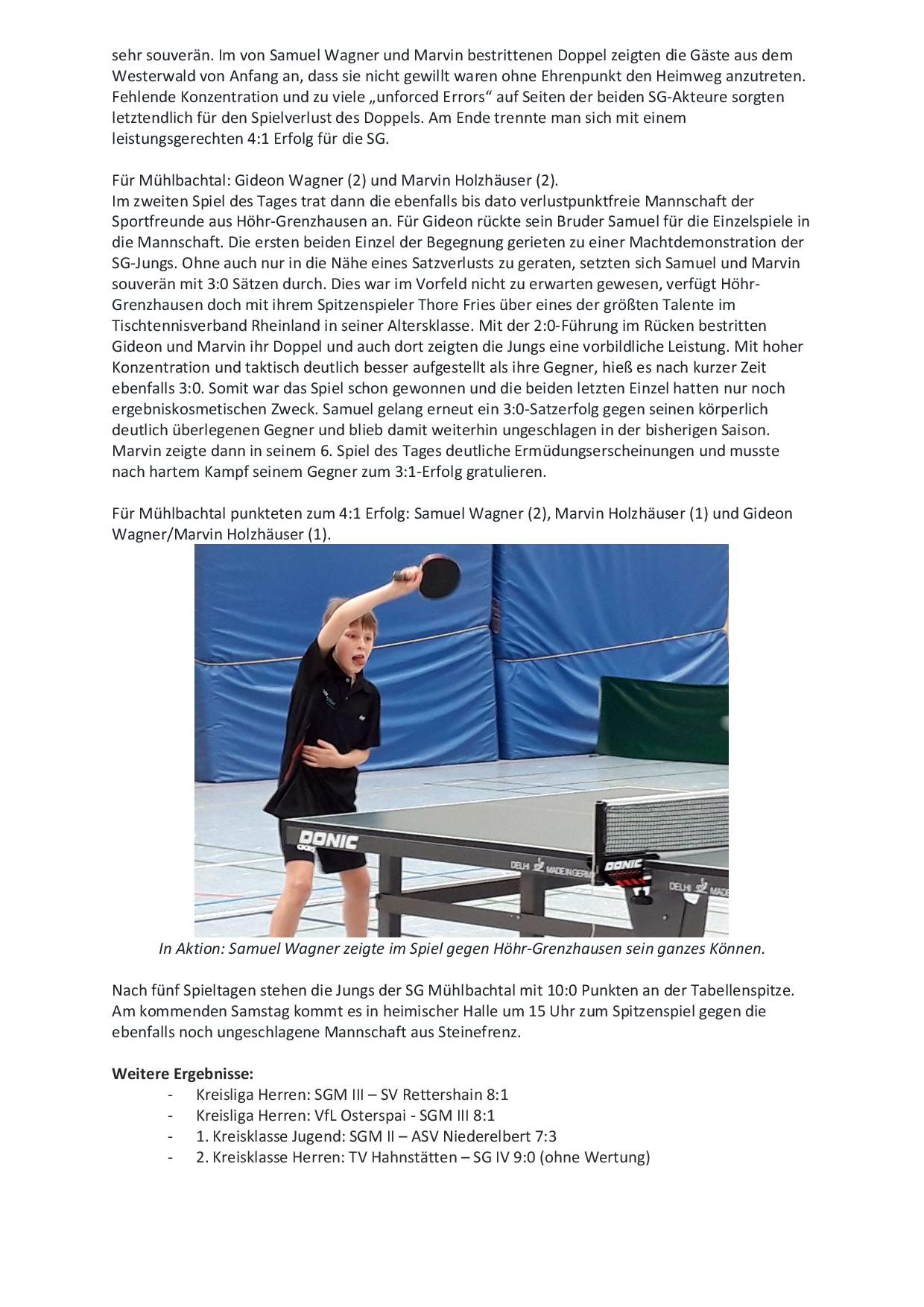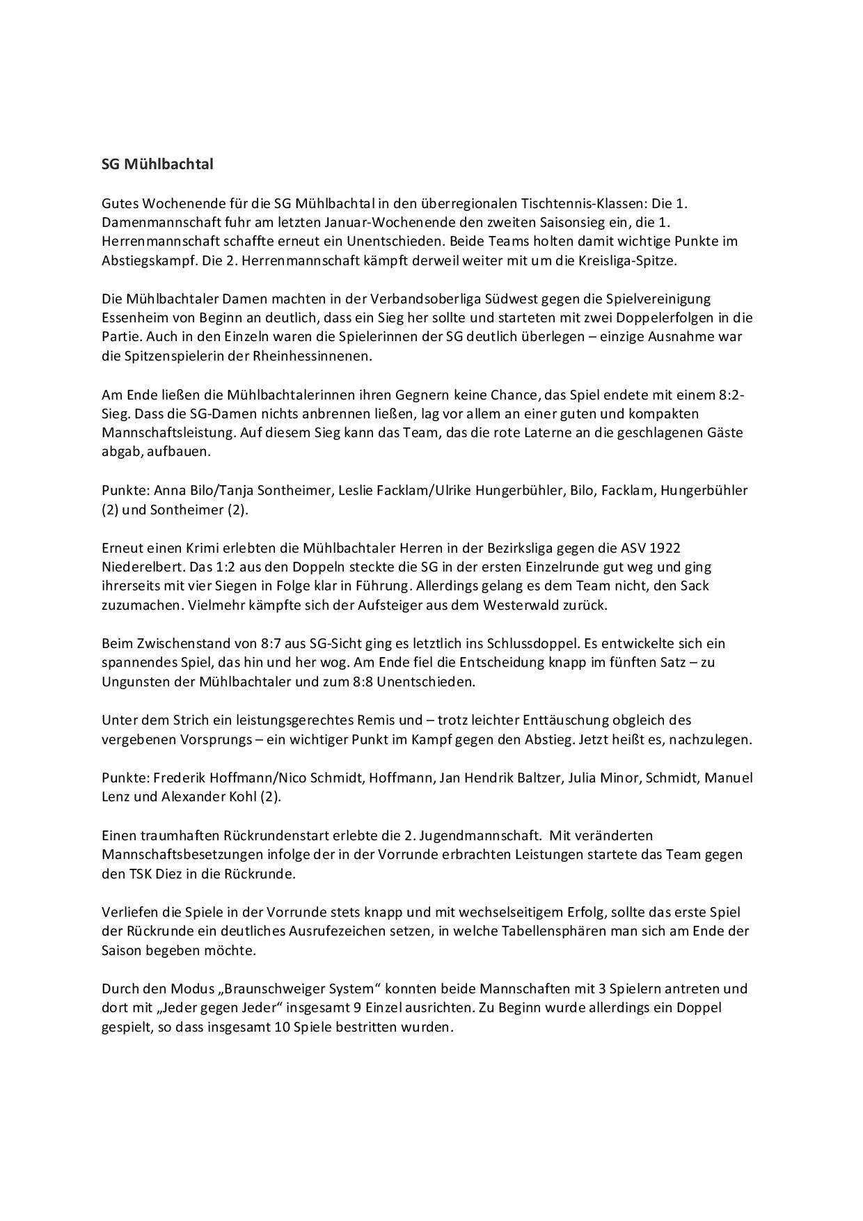 SG Mühlbachtal - TTC Wirges II 7:9.