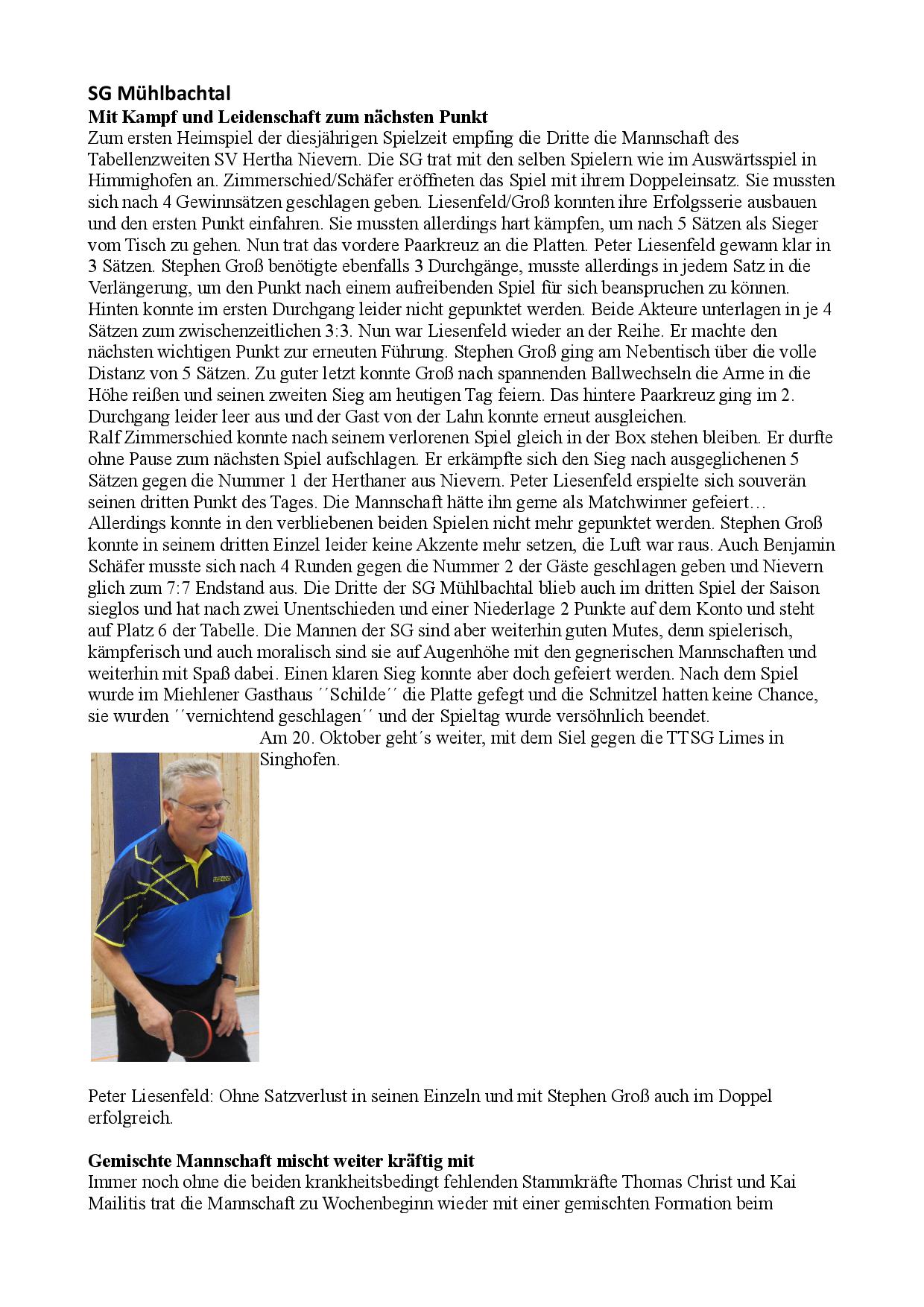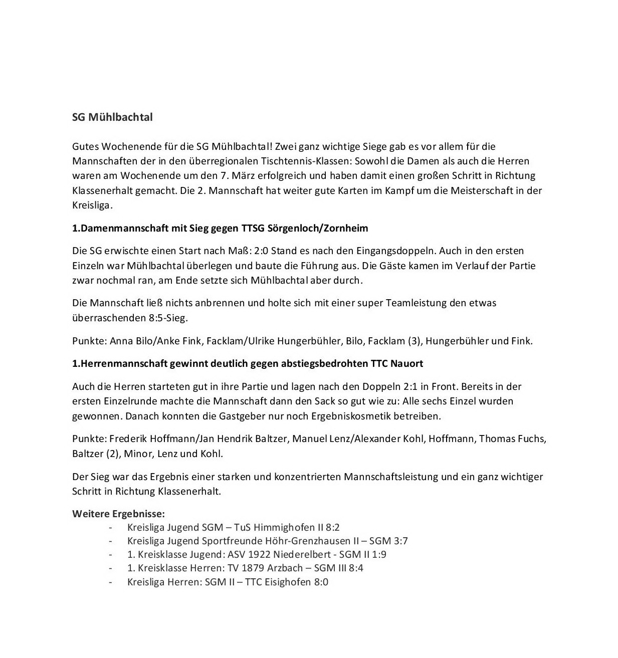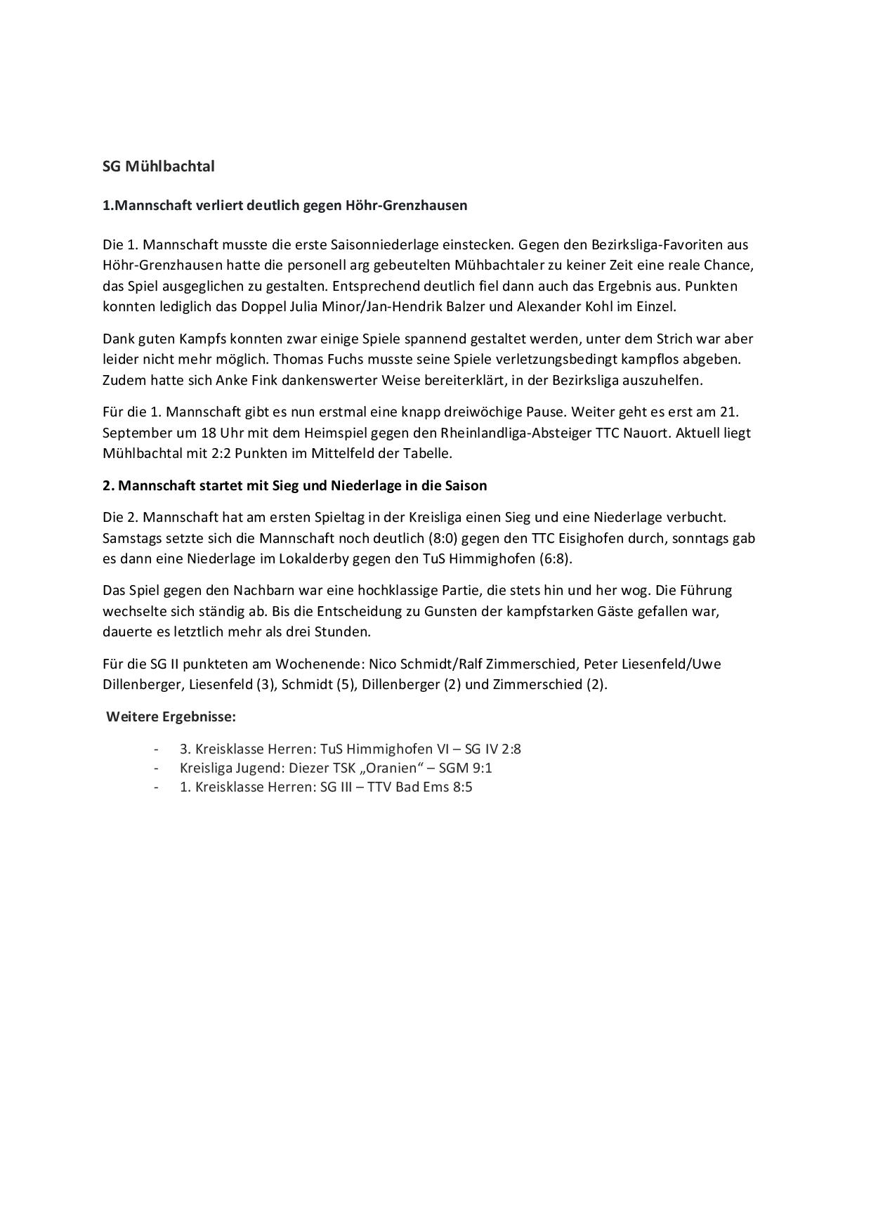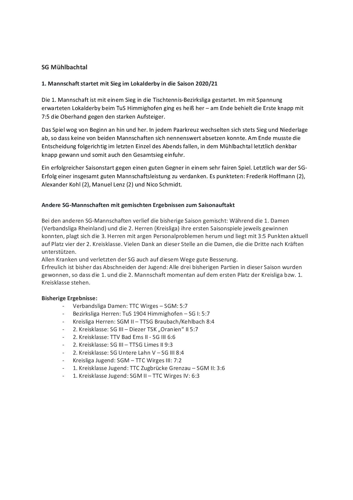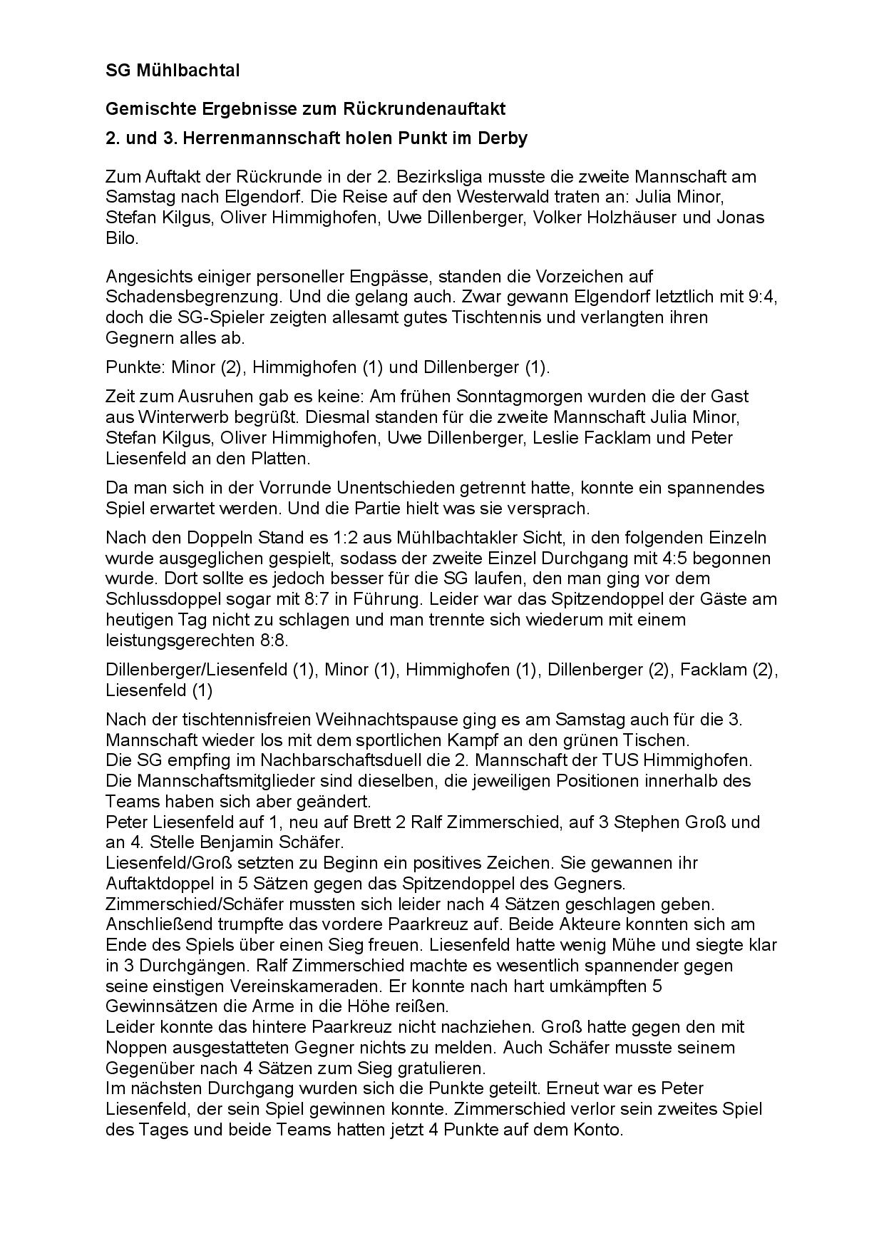SG Mühlbachtal - TTC Wirges II 7:9.