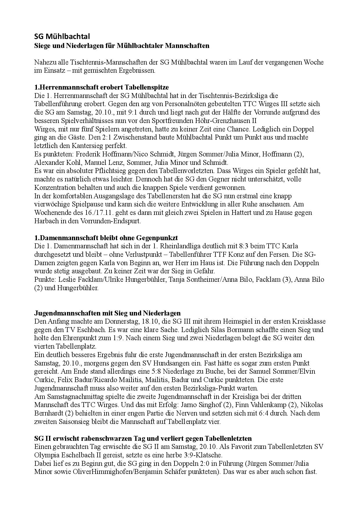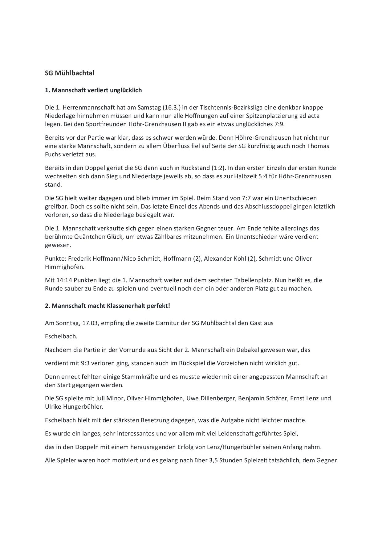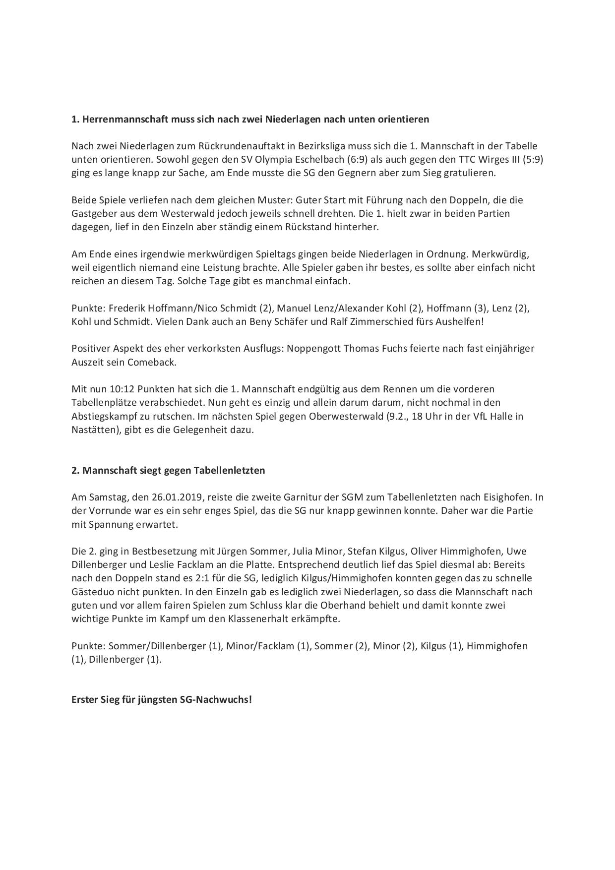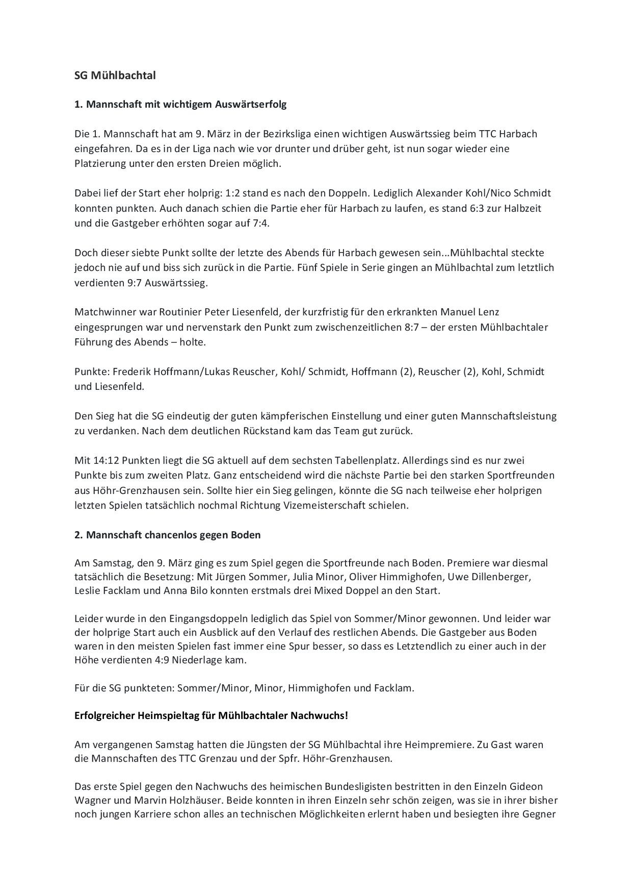 SG Mühlbachtal - TTC Wirges II 7:9.