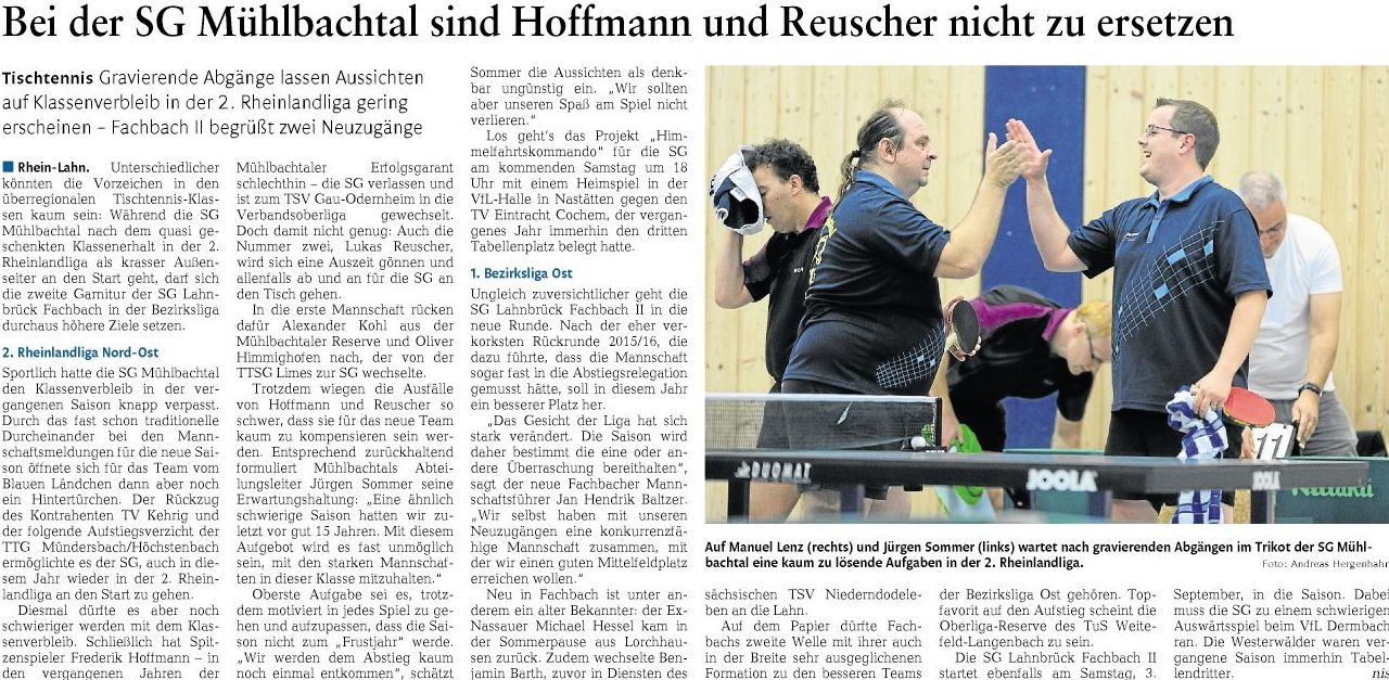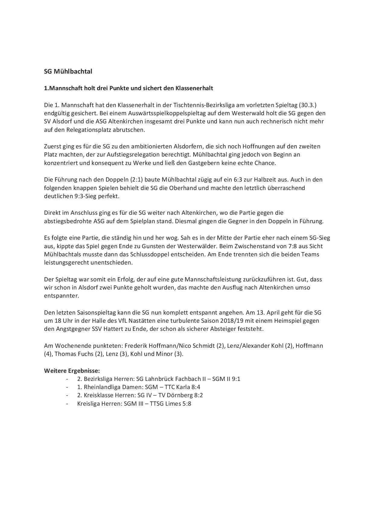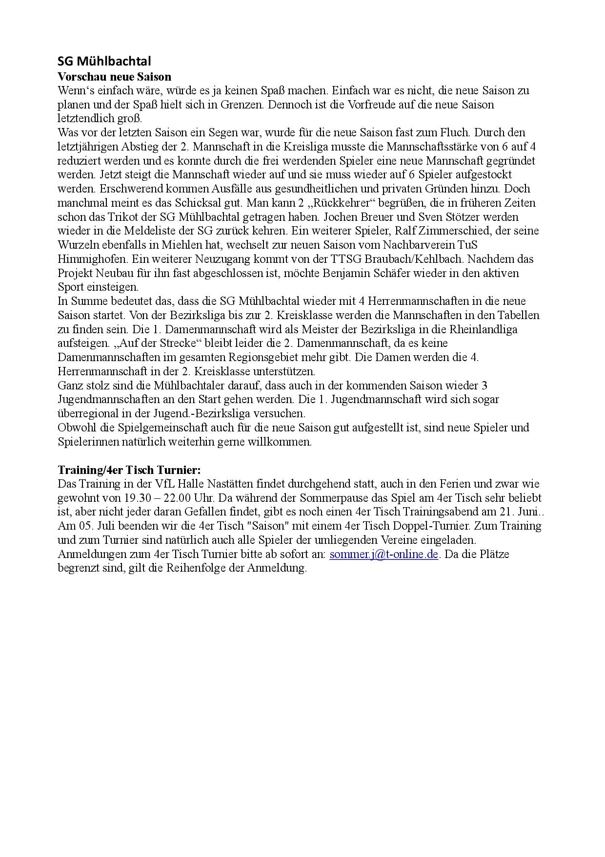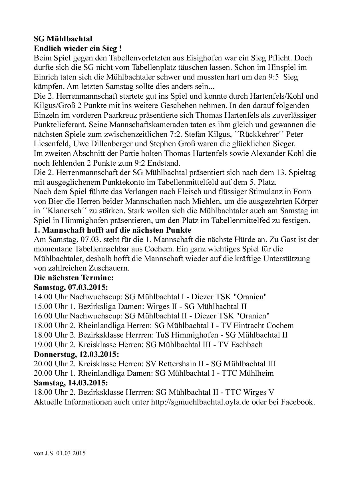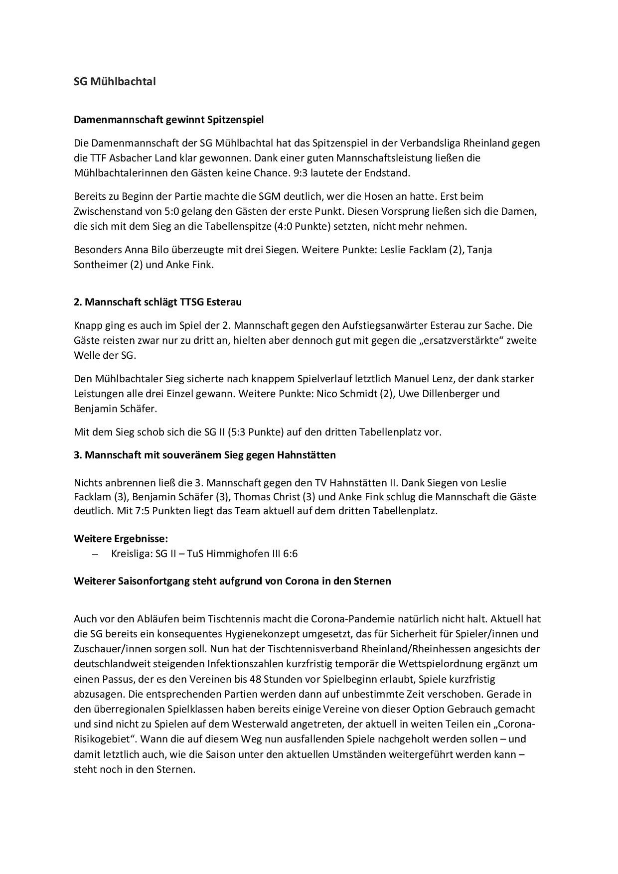 SG Mühlbachtal - TTC Wirges II 7:9.