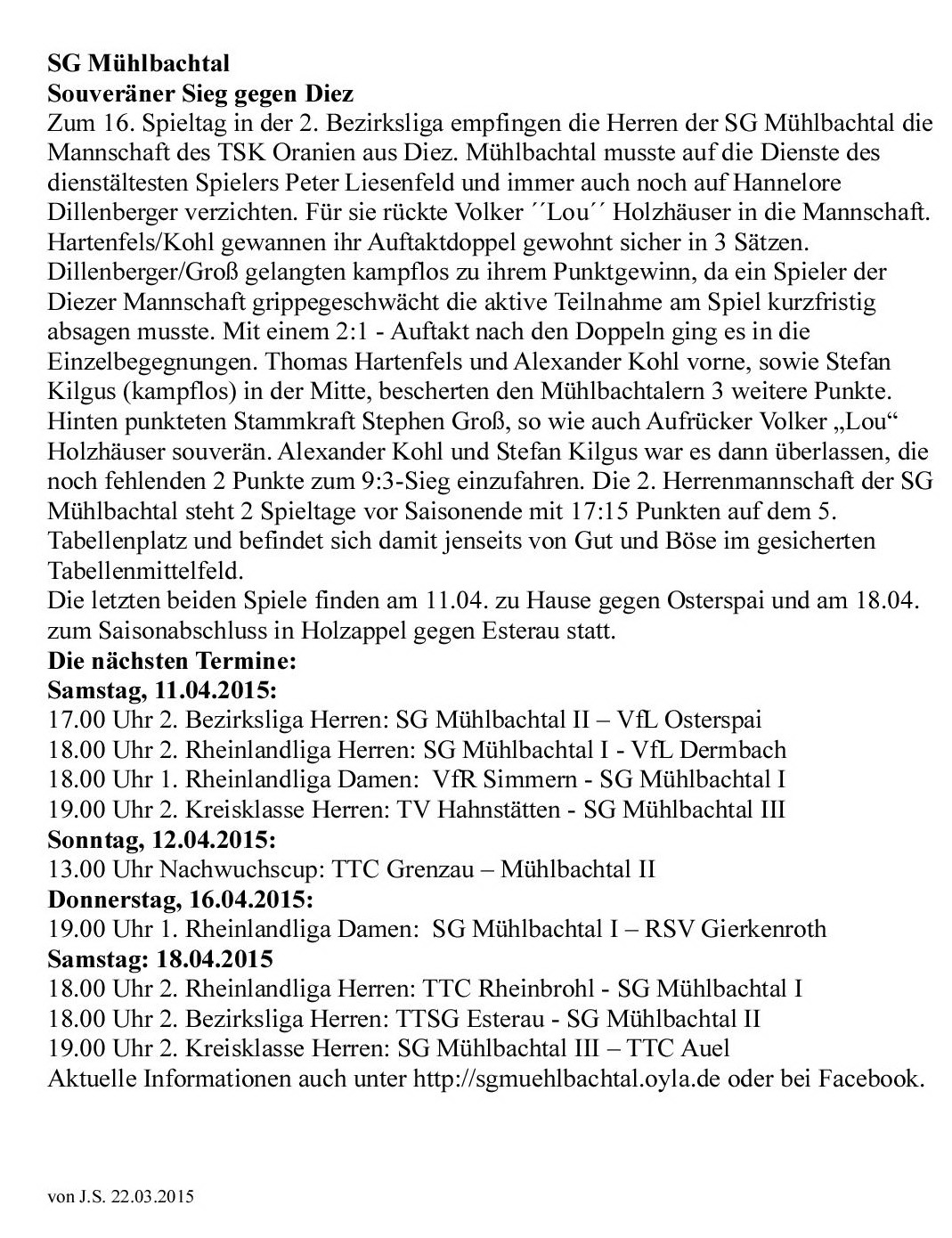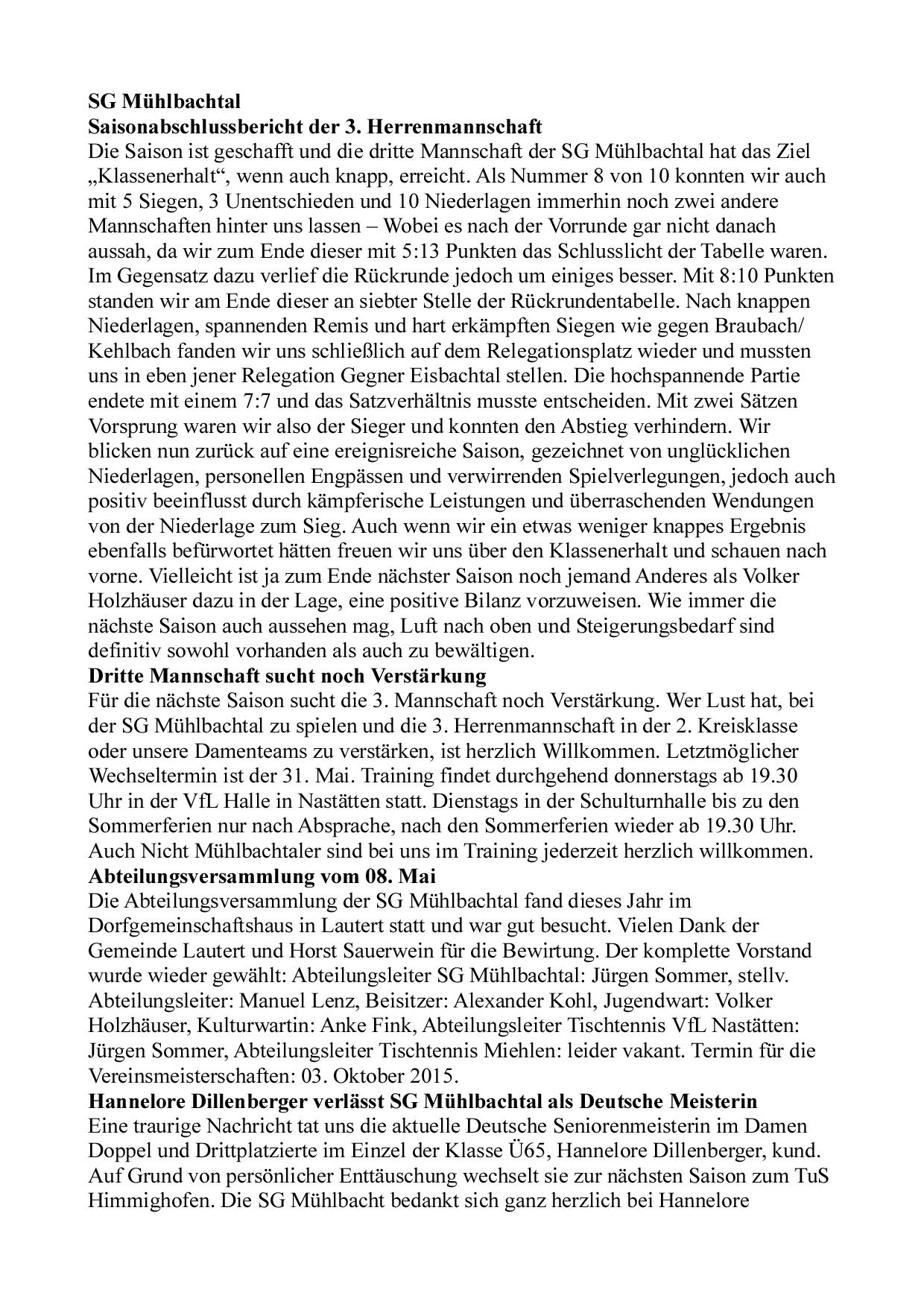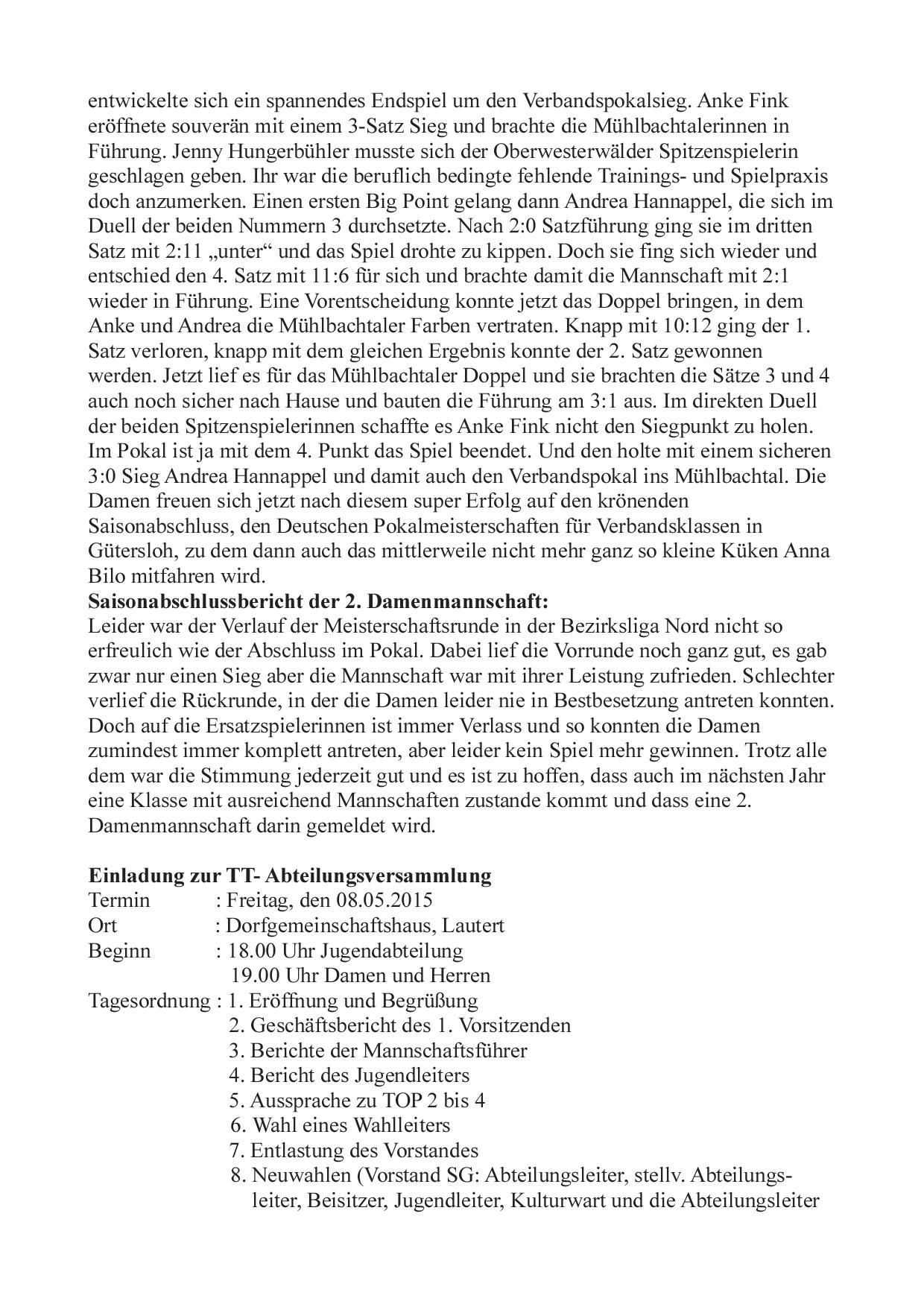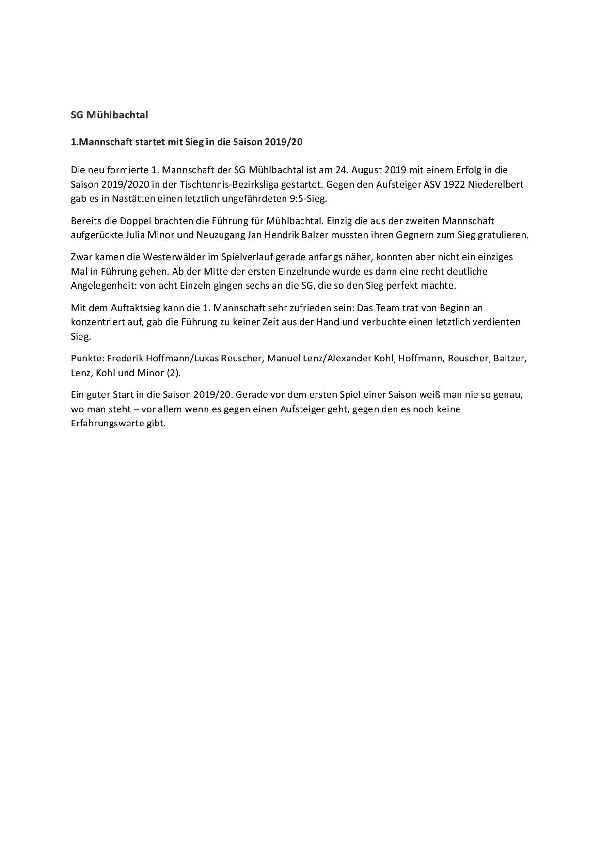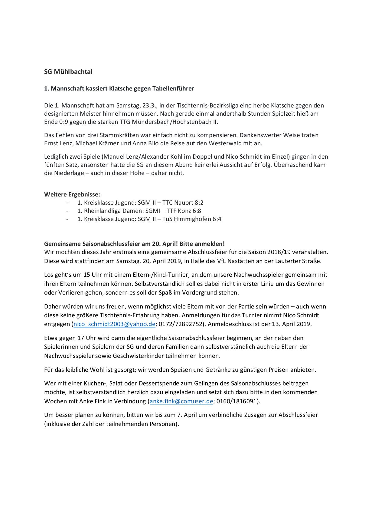 SG Mühlbachtal - TTC Wirges II 7:9.