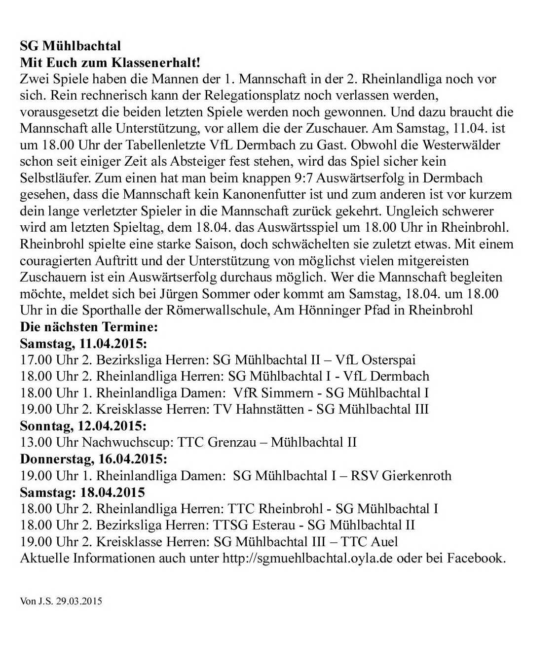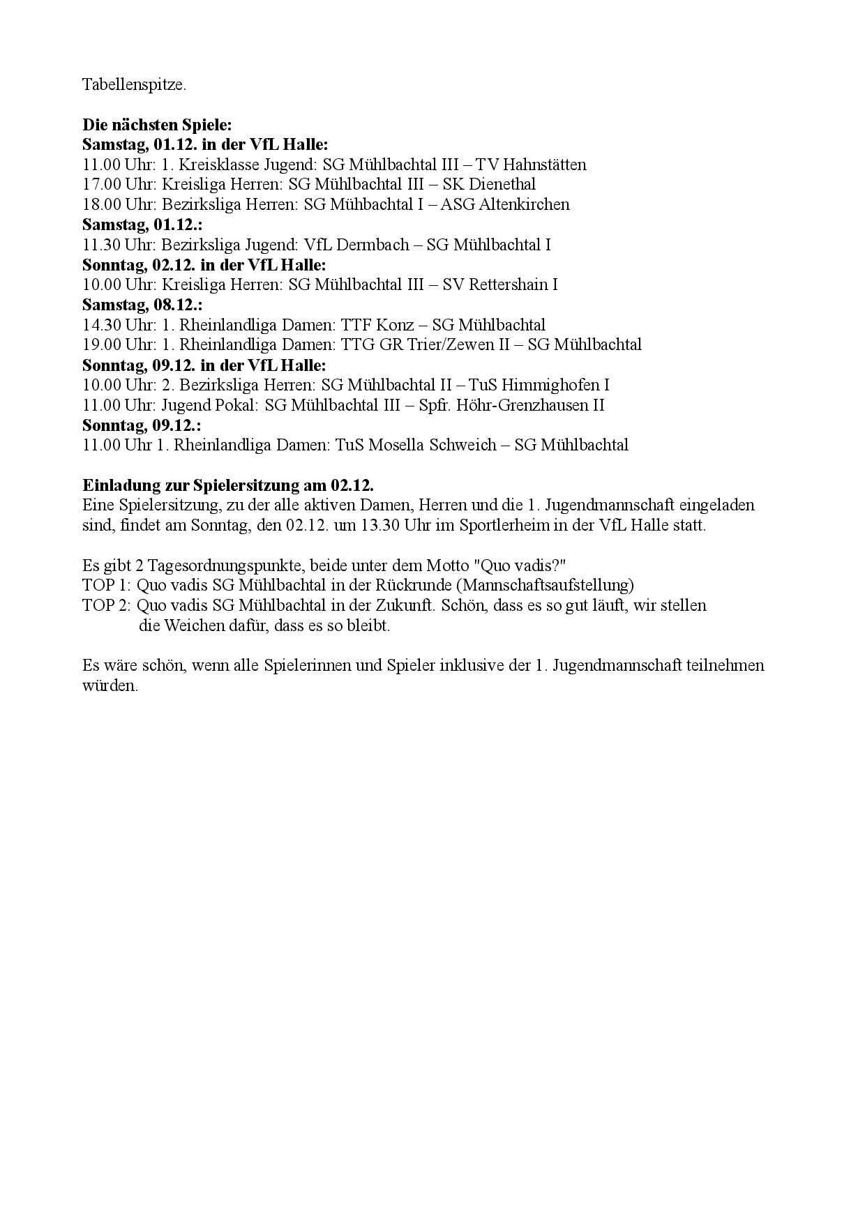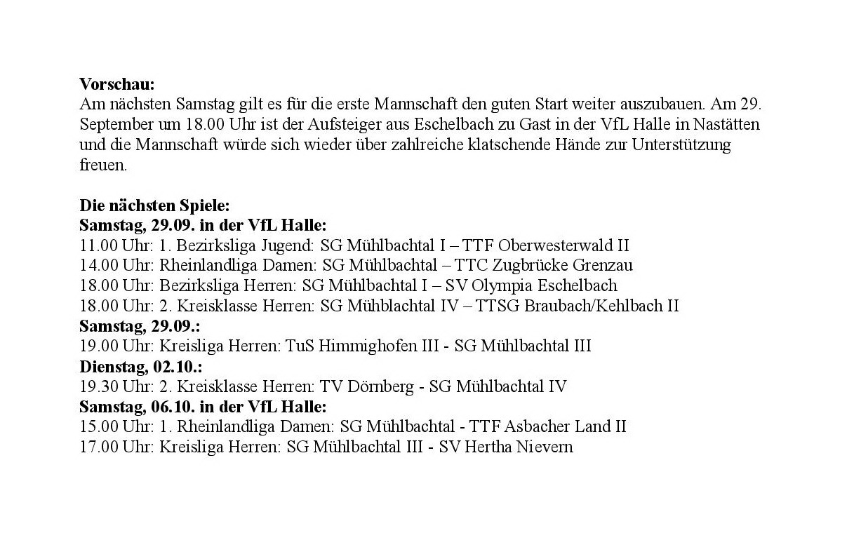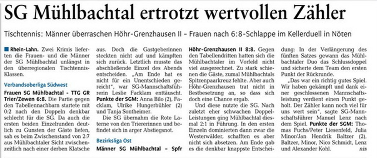 SG Mühlbachtal – TTC Gelb-Rot Trier 8:0.