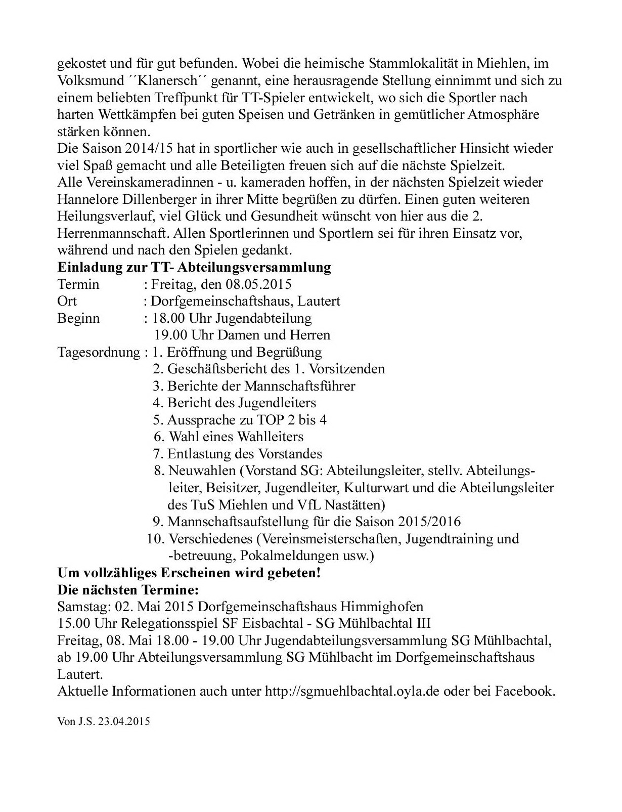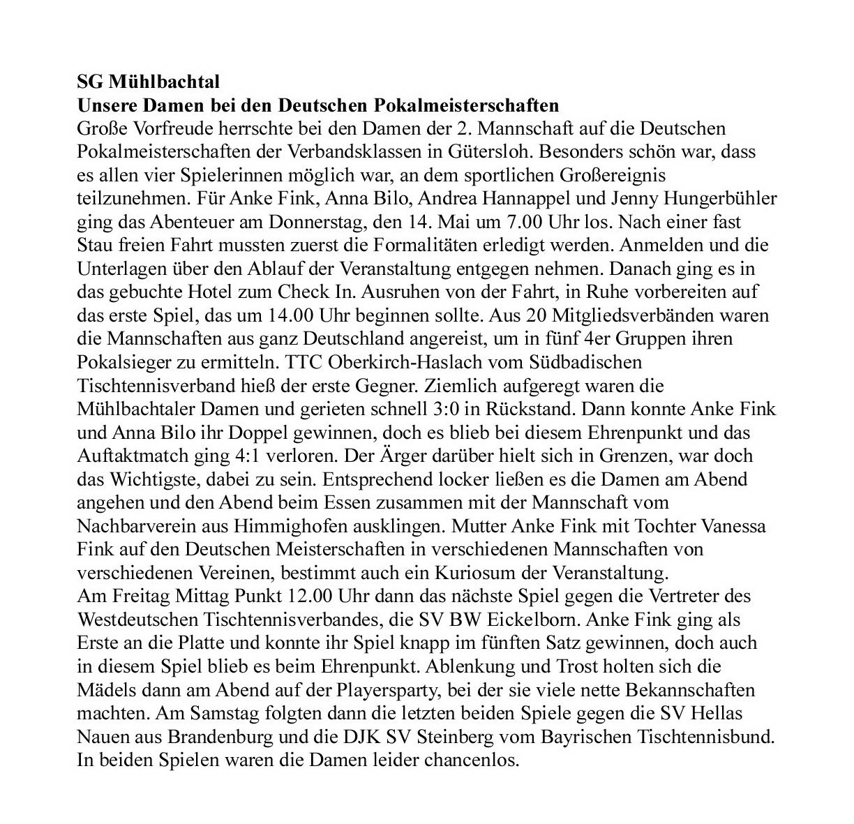 vier Stunden den Mühlbachtaler Erfolg.
