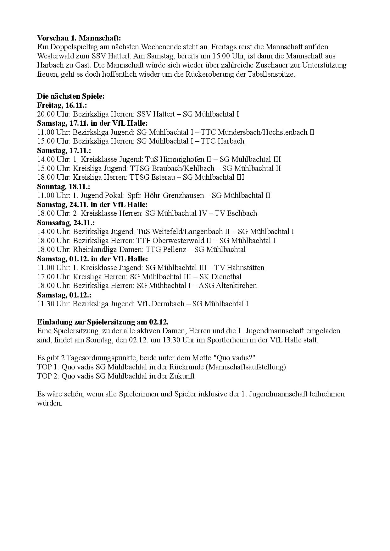 das nächste Mal ran. Dann steht ein schwerer Koppelspieltag