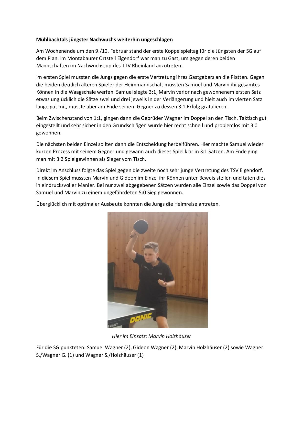 der SG Mühlbachtal gewannen ihre Begegnungen:Frederik