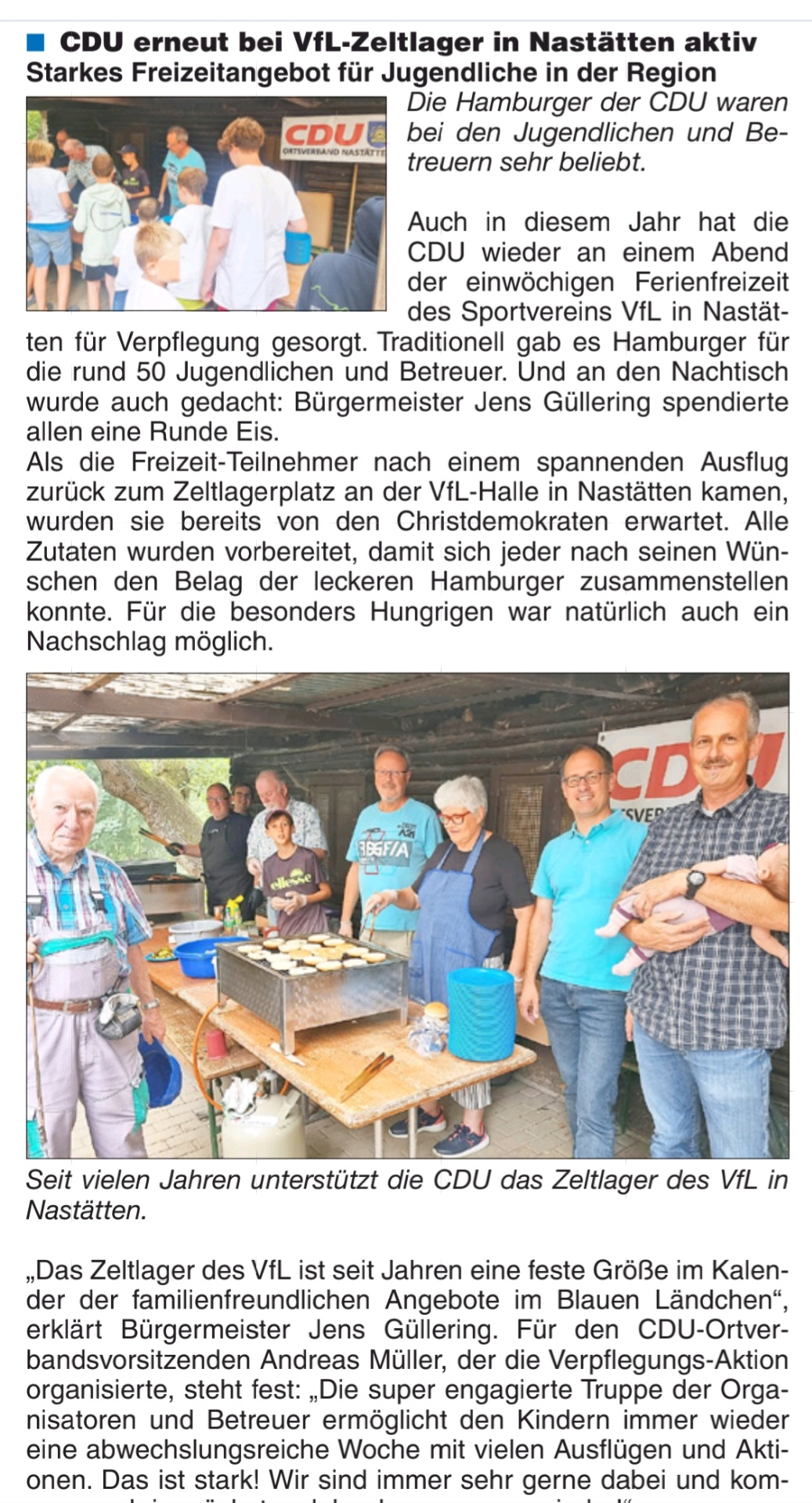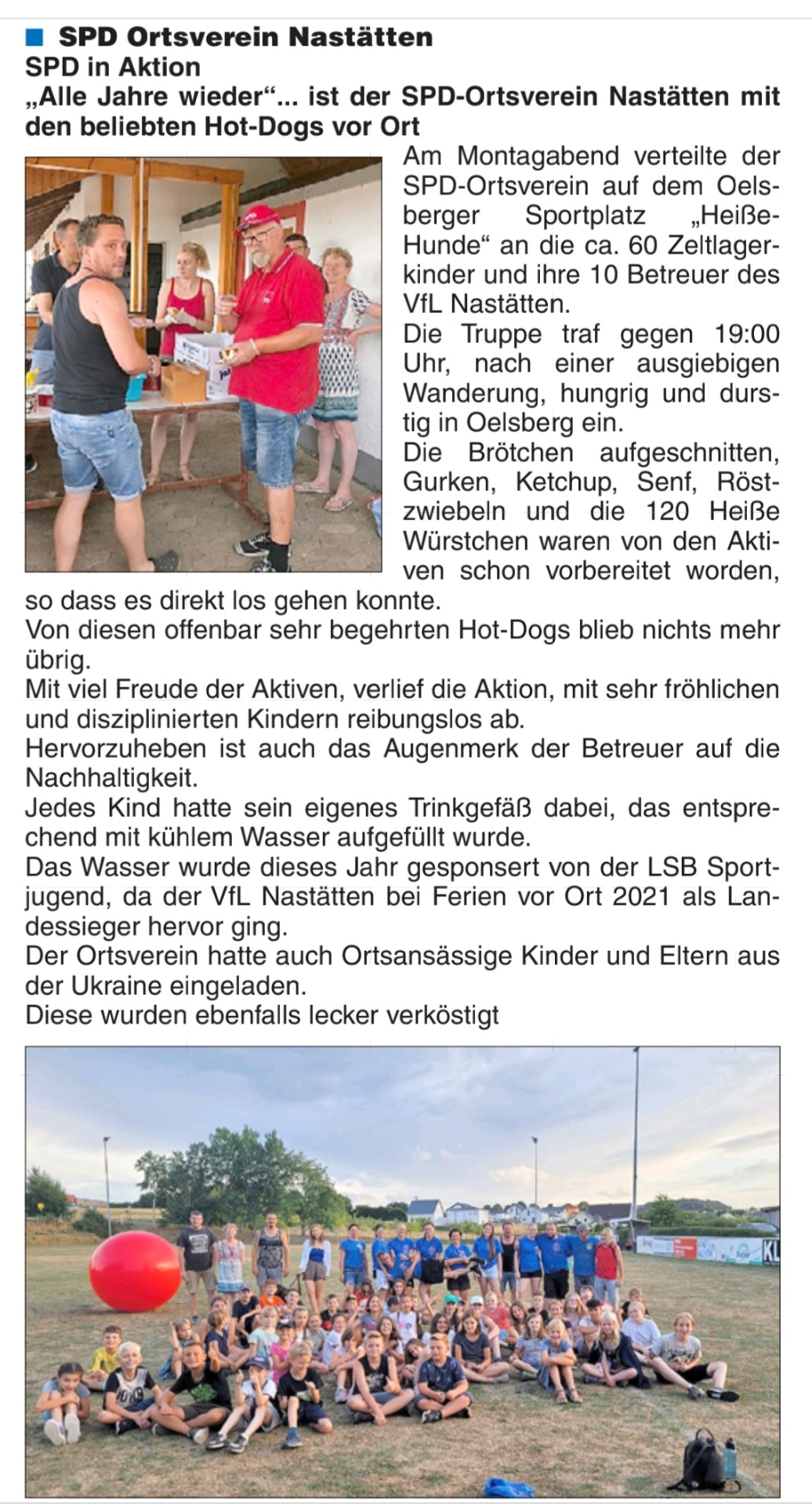 Spenden Übergabe von der Taunus Apotheke Miehlen ans VfL Kinderzeltlager 25.07.2022