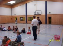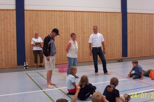 | Zum Anschluss des Zeltlagers 2004 dankte der VfL-Vorsitzende Norbert Maus dem Lagerleiter M. Schulte und seiner Mannschaft für die hervorragende Durchführung der Zeltlagers mit einem kleinen Präsent für jeden der Betreuer.. | ||