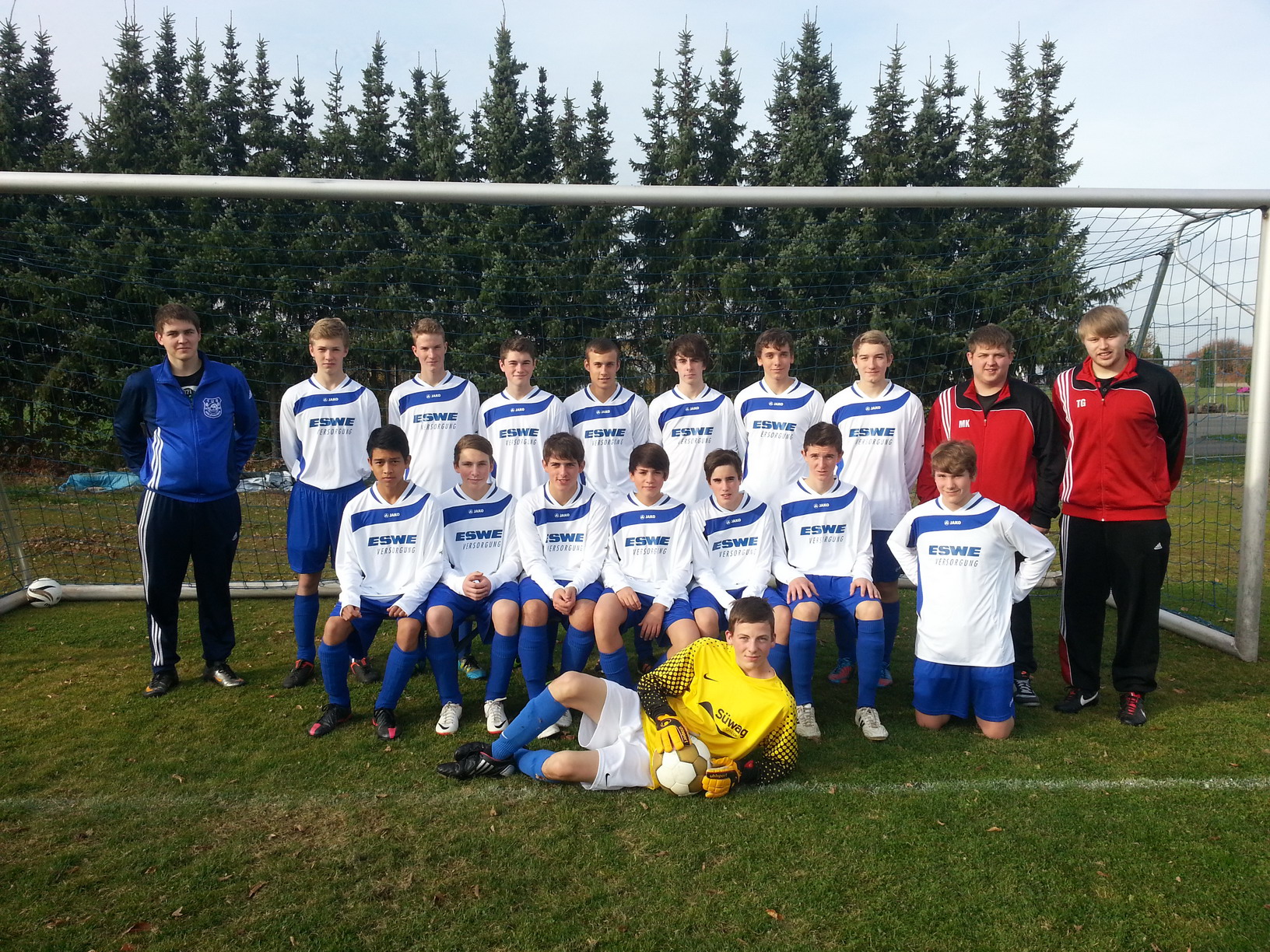 hinten v.l.nach r.: Betreuer Alexander Krug, Niklas Schaffelke, Christopher Bilo, Maximilian Weber, Robin Köhler, Timm Kasnitz, Christian von der Heydt, Lorenz Wilhelmi, Betreuer Maximilian Krug, Betreuer Tobias Göbel Sitzend von links nach rechts: Anuphan Yutthayong, Lukas Lauterbach, Michael Krug, Bastian Stoiber, Lucas Juchem, Jonas Stempel, Jan Hendrik Bauer Liegend: Leon Ries. Es fehlt: Lukas Simon |