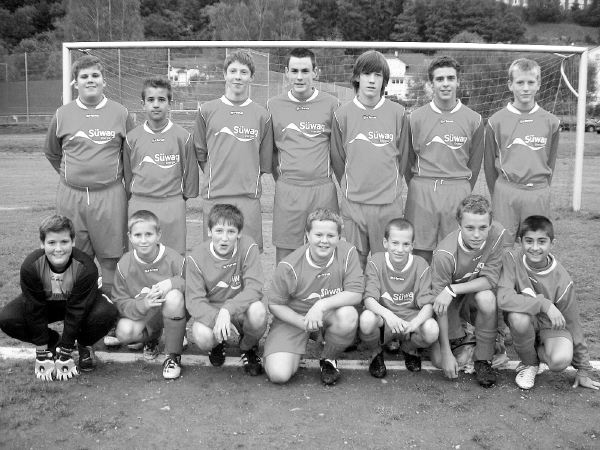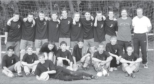 | hinten von links: Betreuer Holger Wölfinger, Nico Michel, Sven Crecelius, Marvin Mayer, Steffen Schmidt, Josef Heinz,Daniel Körfer, Simon Gemmer, Kai Neunstöcklin, Betreuer Ralf Schmidt. Vorne von links: Manuel Friedrich, Matthias Richter,Norman Wölfinger, Bastian Hofmann, Magnus Minor, Sven Flemming, Felid Agirman, Waldemar Hass, André Müller und Florian Schmidt. |