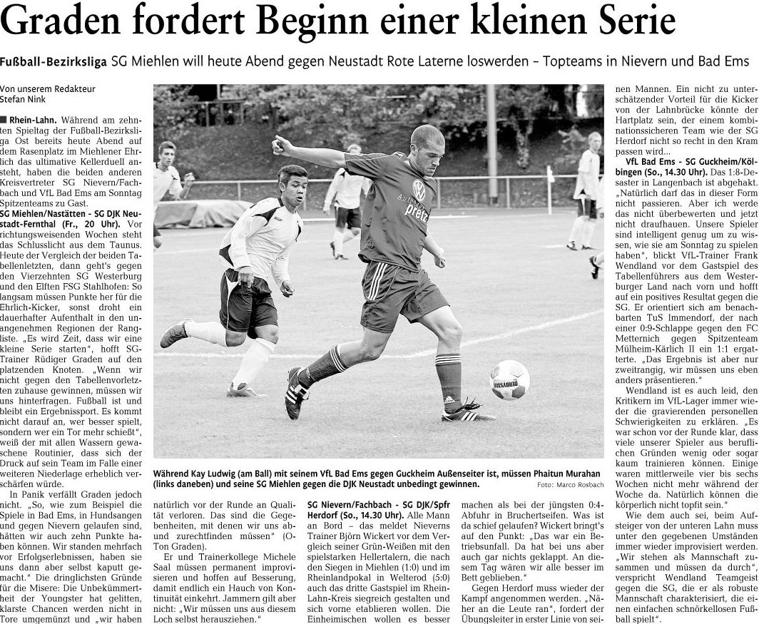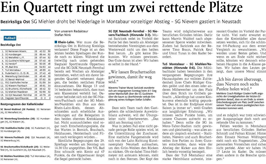 DJK Neustadt-Fernthal - SG Miehlen/Nastätten (So., 14.30 Uhr). Vor