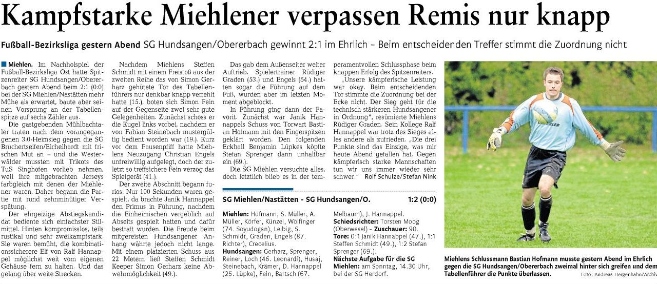 Hundsangen: Gegen den Favoriten haben sich die Miehlener nur wenige