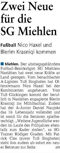 SG Miehlen/Nastätten - SG Wester-burg/Gemünden. Nach