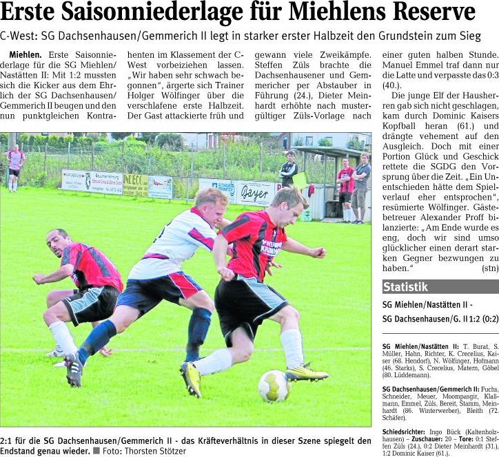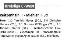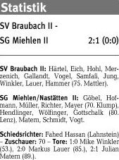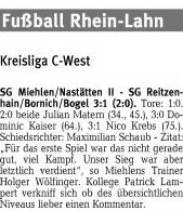 SG Miehlen/Nastätten II - SV Oelsberg 6:3 (4:1). Tore: