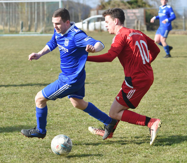 auf dem Foto links, im Duell mit Dennis Babst) hatten die Kugel,