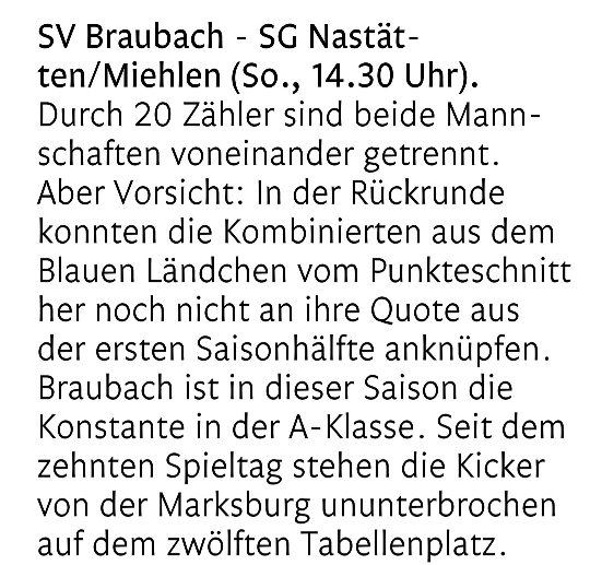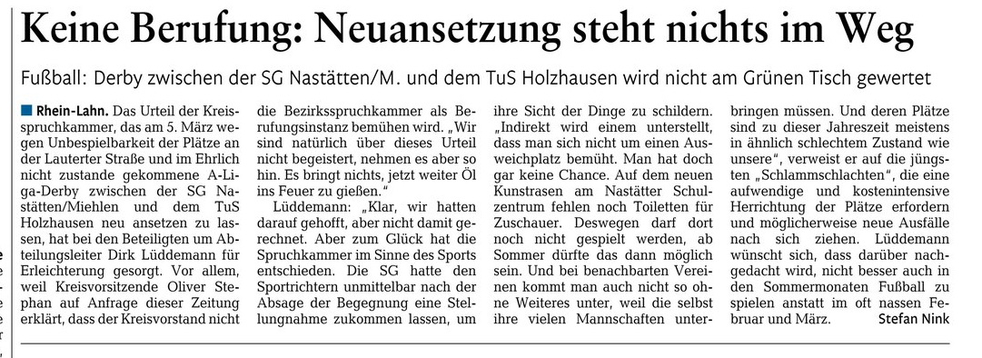 Effizienz spricht für Nastätten: TuS Singhofen verliert