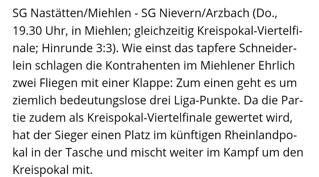 A-Ligisten SG Nastätten/Miehlen die Spannung raus, wer ins