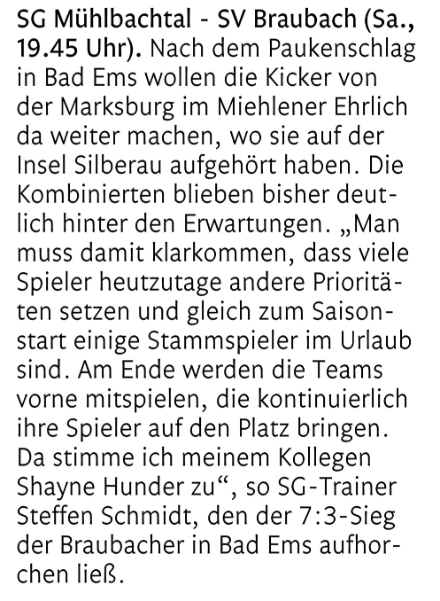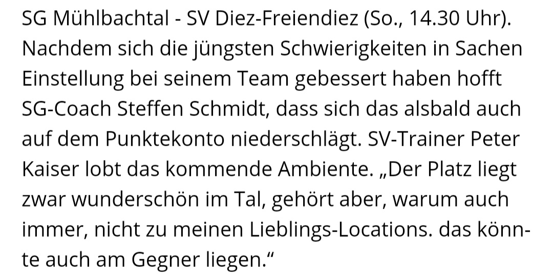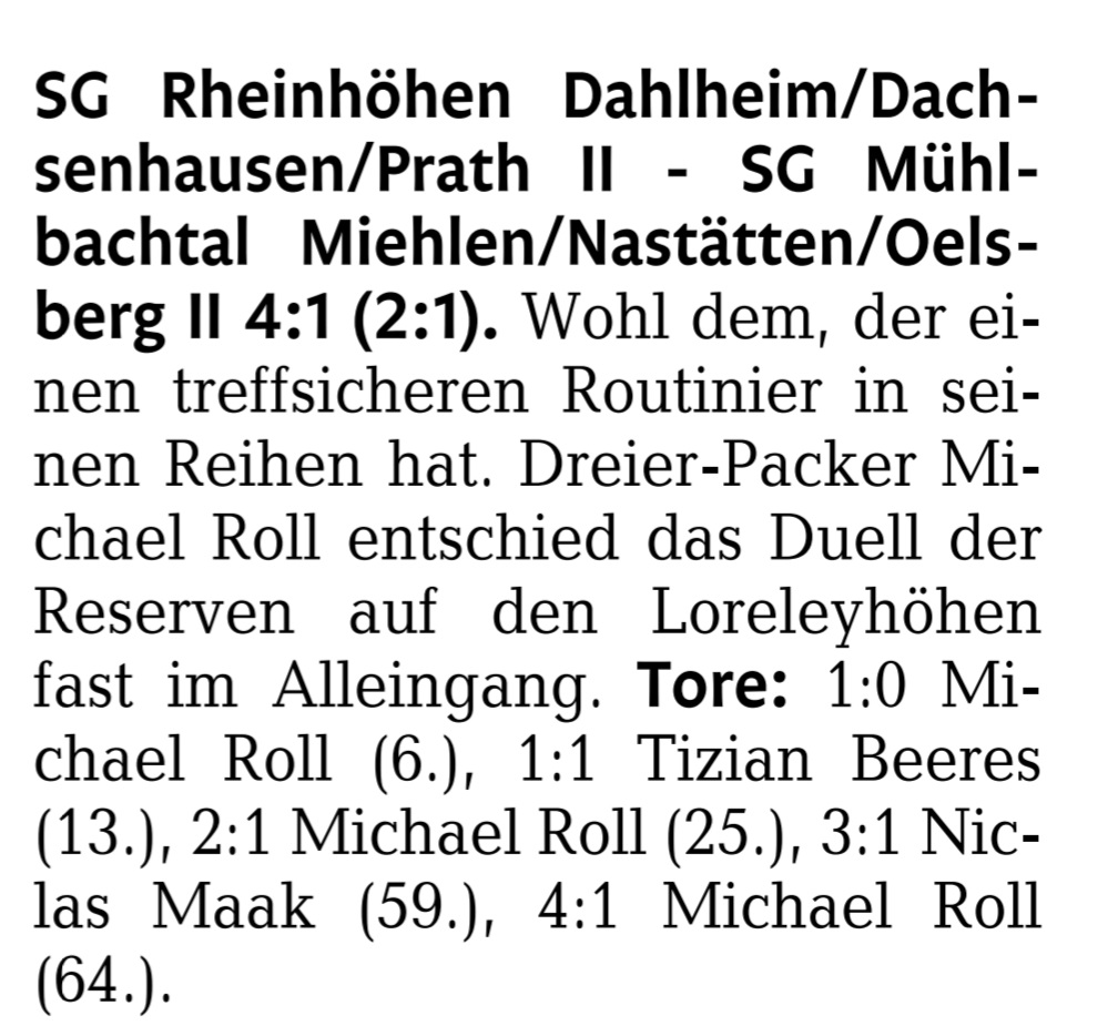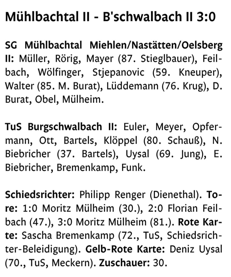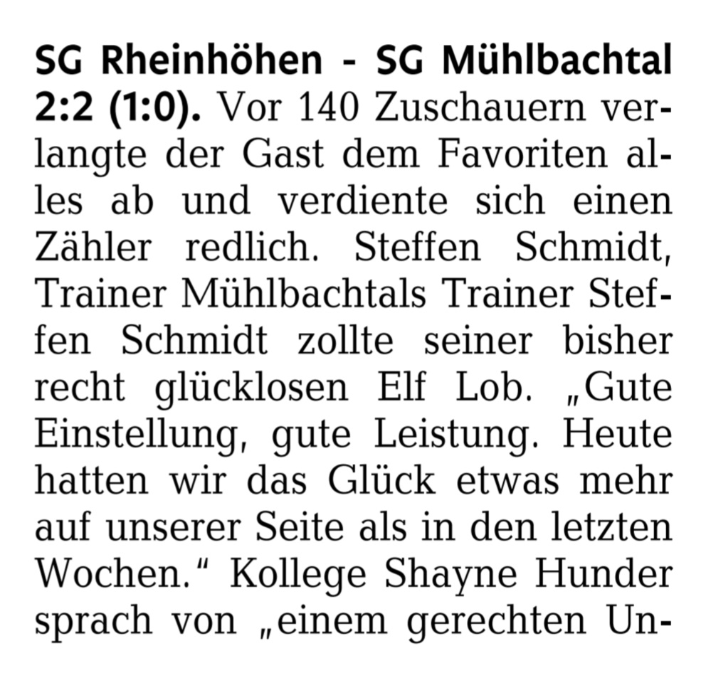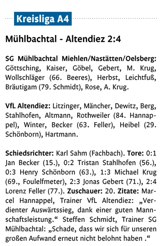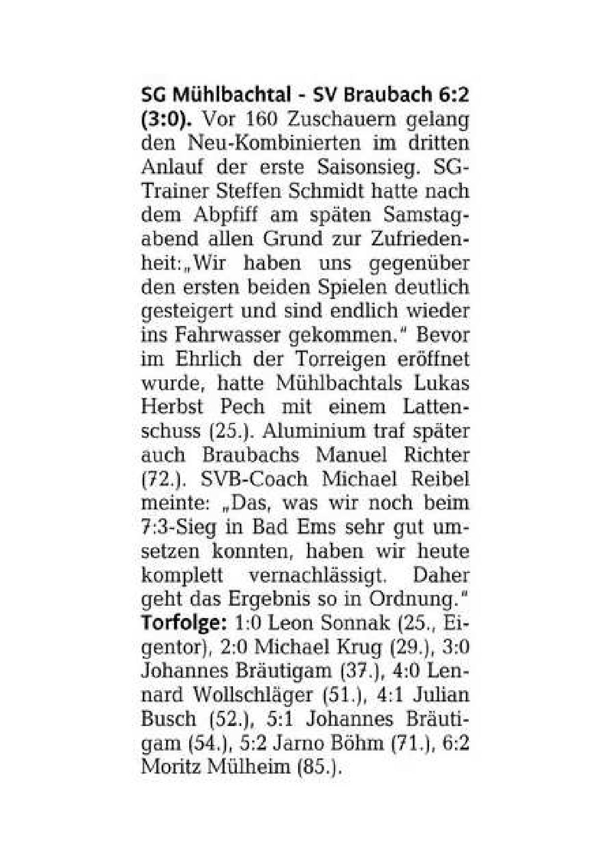 beiden Gegentoren. „Das hat Mühlbachtal bestraft.“ Tore: 1:0 Louis