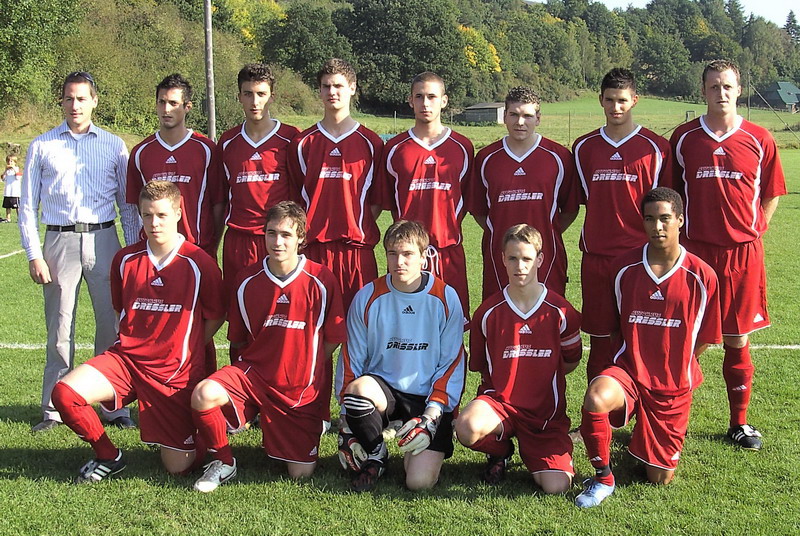 stehend v.l. : Herr Dressler vom Autohaus Dressler, Chris Müller, Fabian Künzel, Daniel Körfer, Manuel Reinhardt, Eduard Fischer, Marcello Dreher, Michele Saal. kniend v.l. : Amando Siebert, Sven Flemming, Bastian Hofmann, André Müller u. Derrick Miles. |