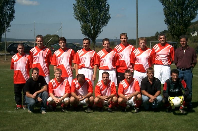 | v. h. links: Wini Appel, Manuel Pfeifer, Hadzelek Björn, Shefki Zymeri, Björn Wiegand, Kai Pfeifer, Dirk Peiter, Gerd Müller, Volker Bröder (Betreuer) v. vorne links: Sascha Lenz, Mark Gabel, Agim Kasymi, Michael Rang, Jörg Müller, Hansi Breuer und Grubisic Dragitin. | |||||
