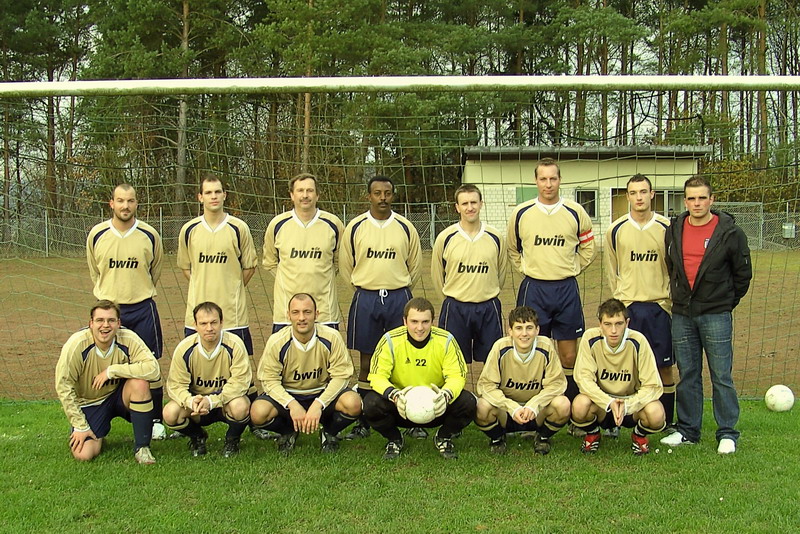| hinten v. links: Achim , Jens Schäfer, Holger Wölfinger, Theo Fanta, Jörg Müller, Sven Müller, Juri Gergert, Swen Peiter. vorn v. links: Julian Matern, Michael Rang, Matthias May, Torhüter, Norman Wölfinger und Florian Schmidt |