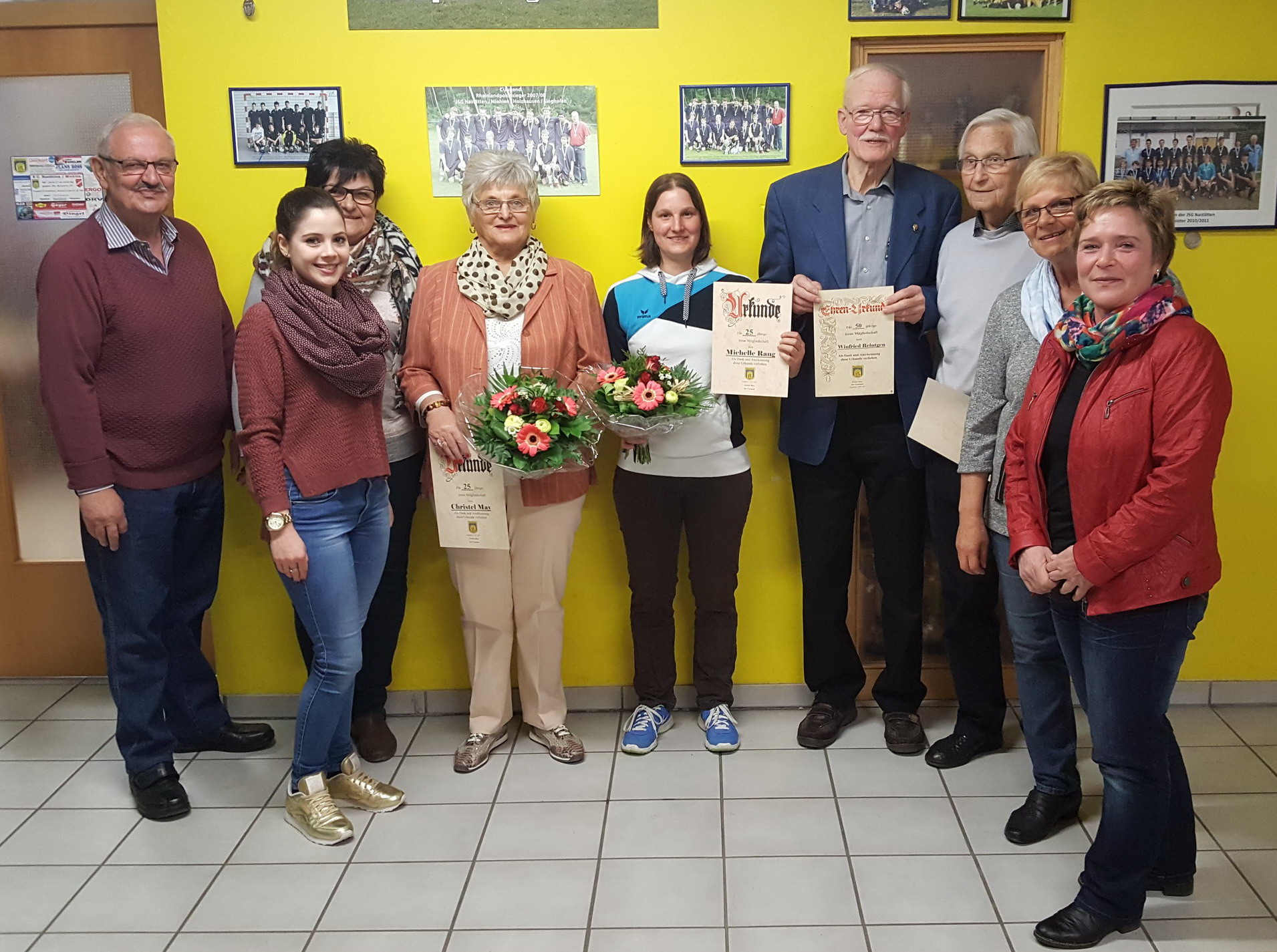| von links: Norbert Maus, Friederike Schmitz(JL), Gurdrun Gerhards, Christel May(25), Michelle Rang (25),Winfreid Reintgen (50), Fritz Ludwig (25), | |||||||||||