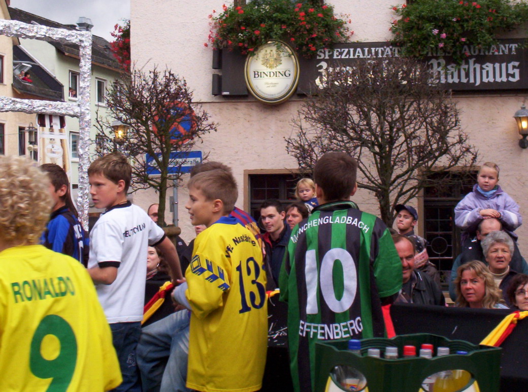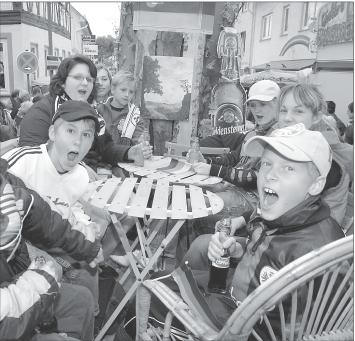 Lautstark stimmten sich diese jungen Fußballfreunde schon auf dem Oktobermarktumzug auf die Weltmeisterschaft 2006 ein. |