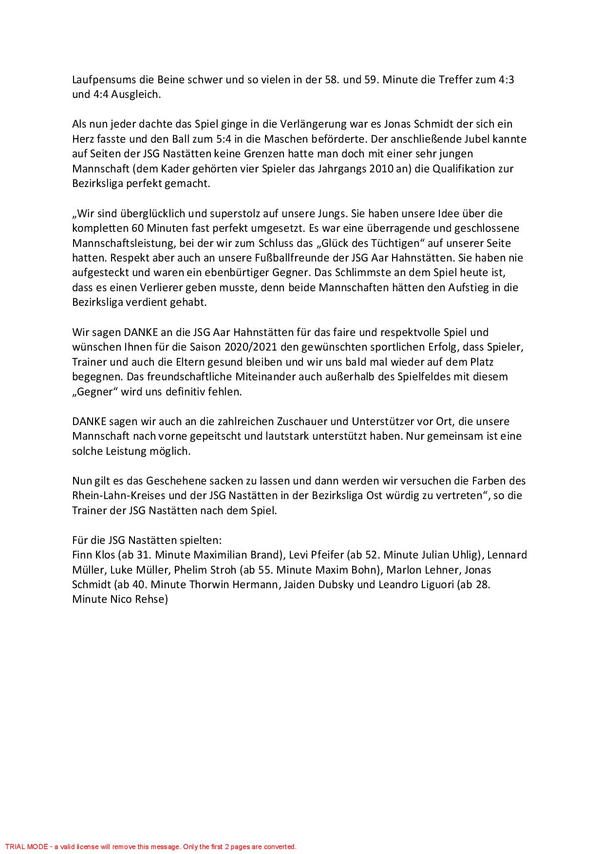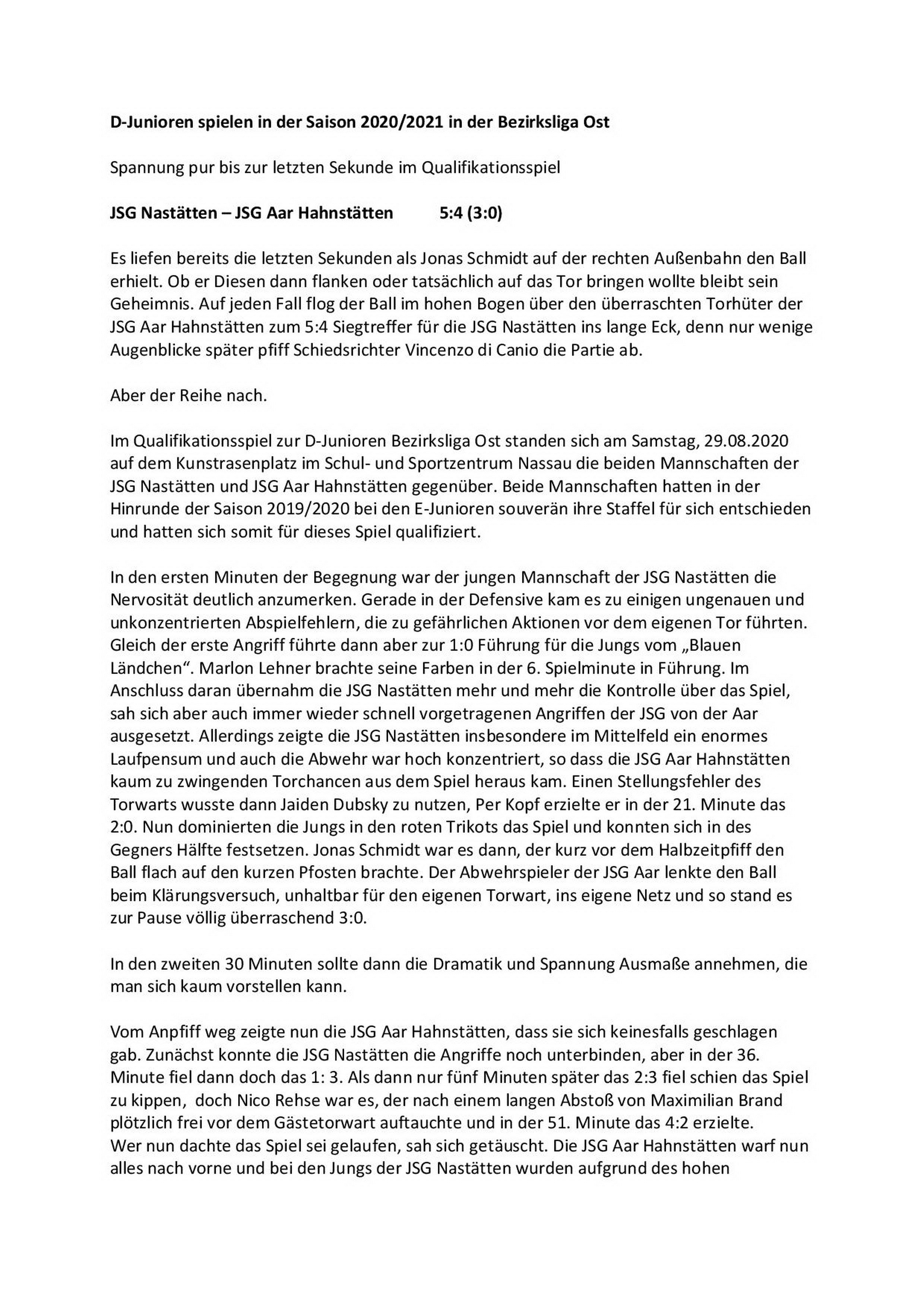 Pressebericht D-Junioren 2020/21 Stand: 31.08.2020